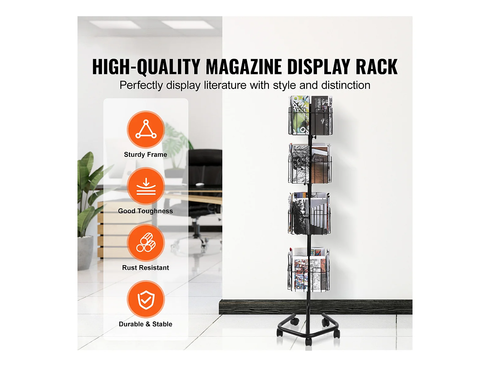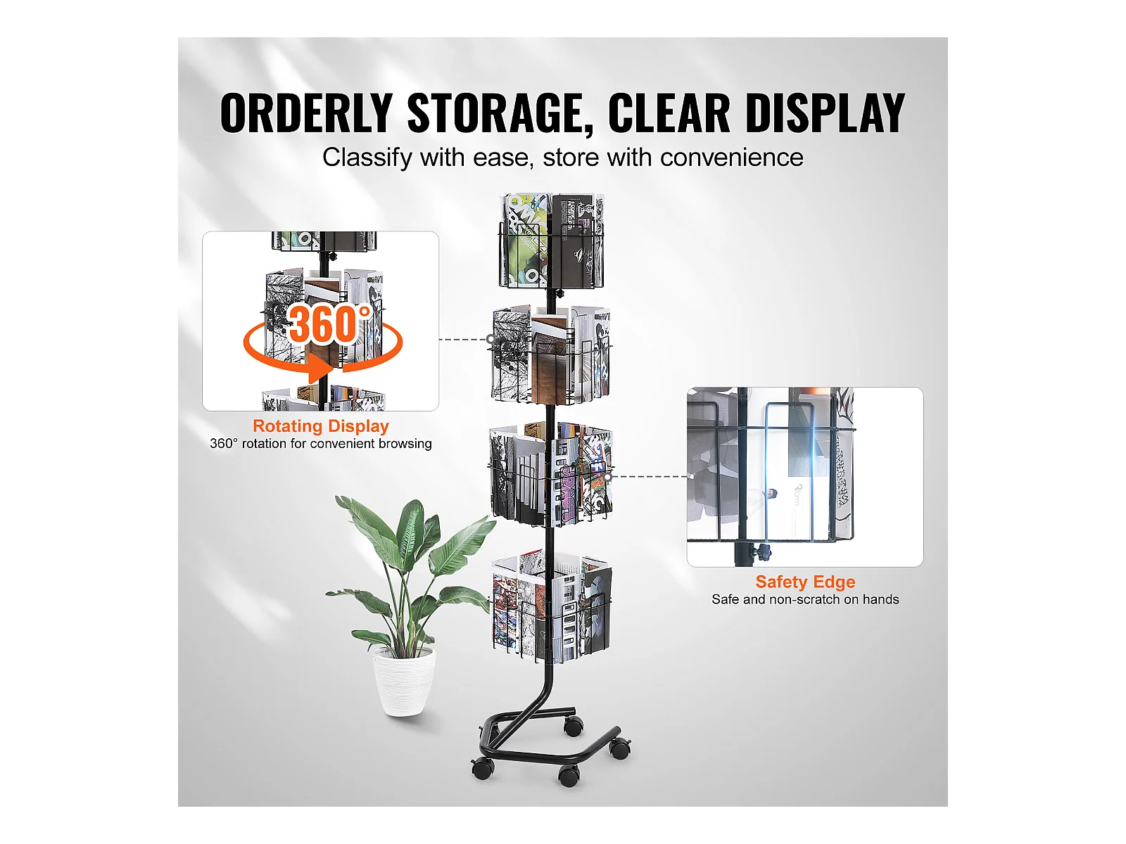 Porte-Brochures SucceBuy, 32 Poches, Support de Documentation Rotatif avec 5 Roulettes