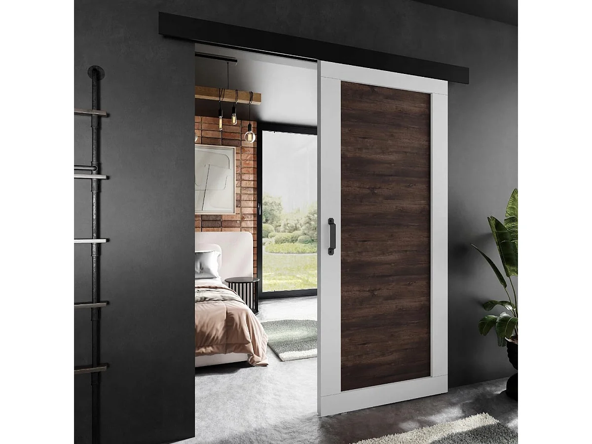Porte coulissante ADIO 1 avec cache-rail blanc et frêne foncé 90