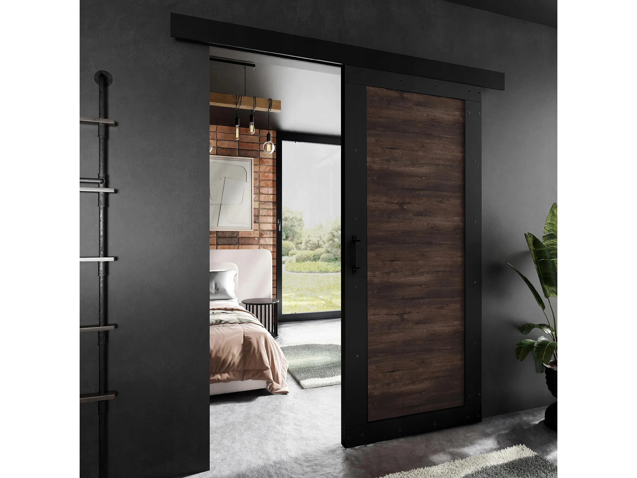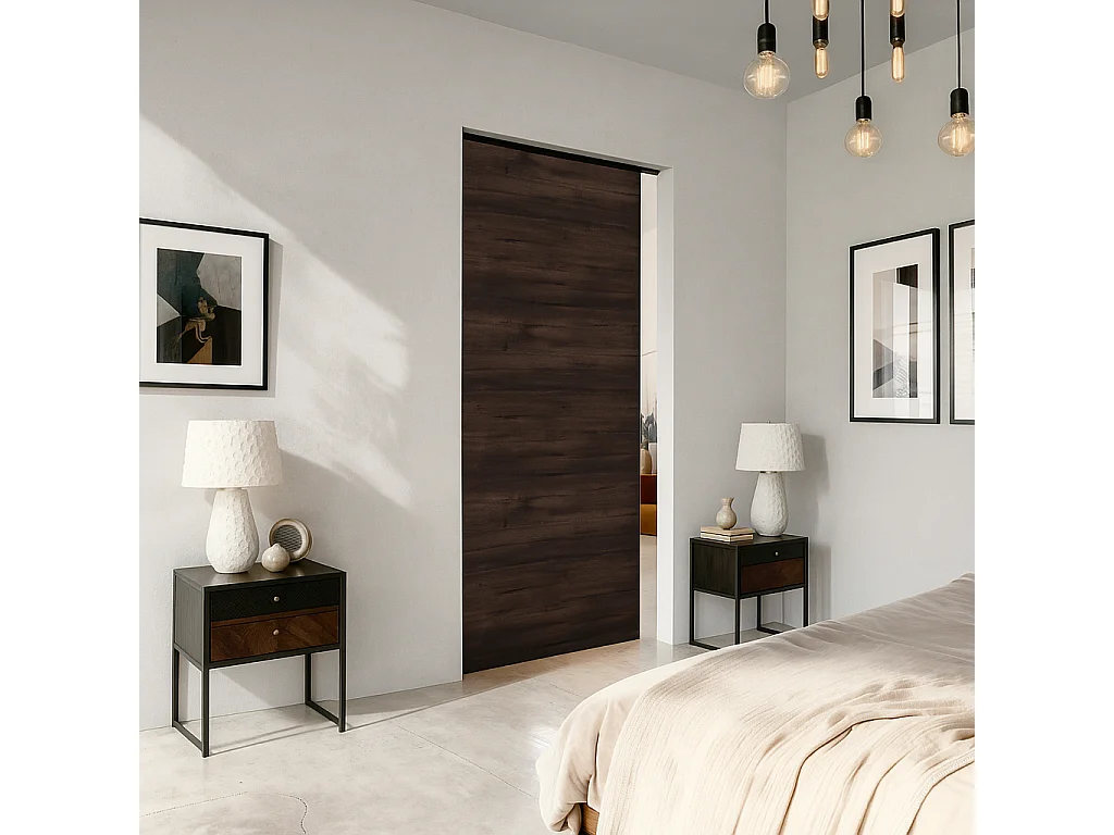 Porte coulissante ADIO 2 avec cache-rail noir et frêne foncé 60