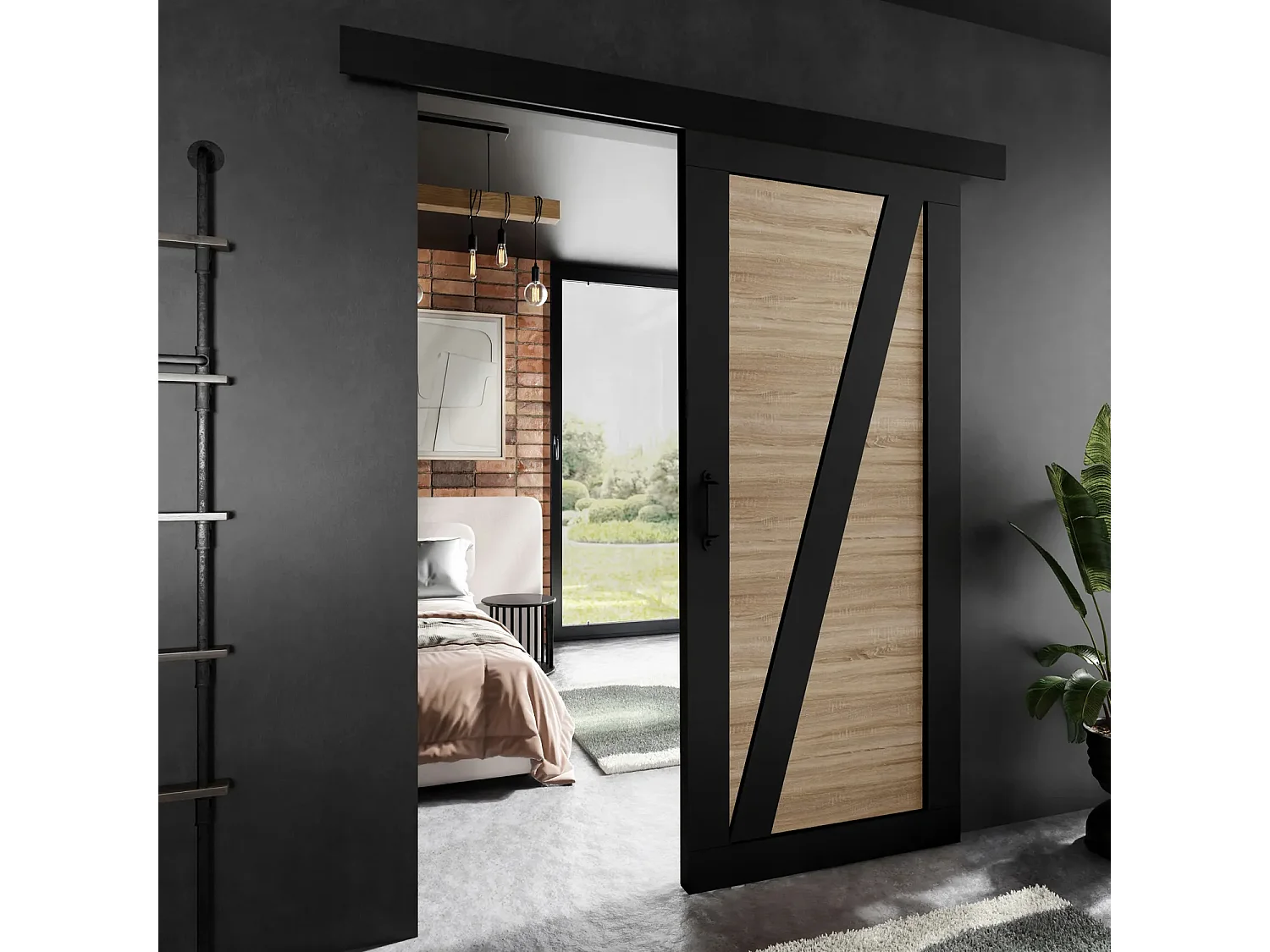Porte coulissante ADIO 3 avec cache-rail noir et chêne sonoma 90