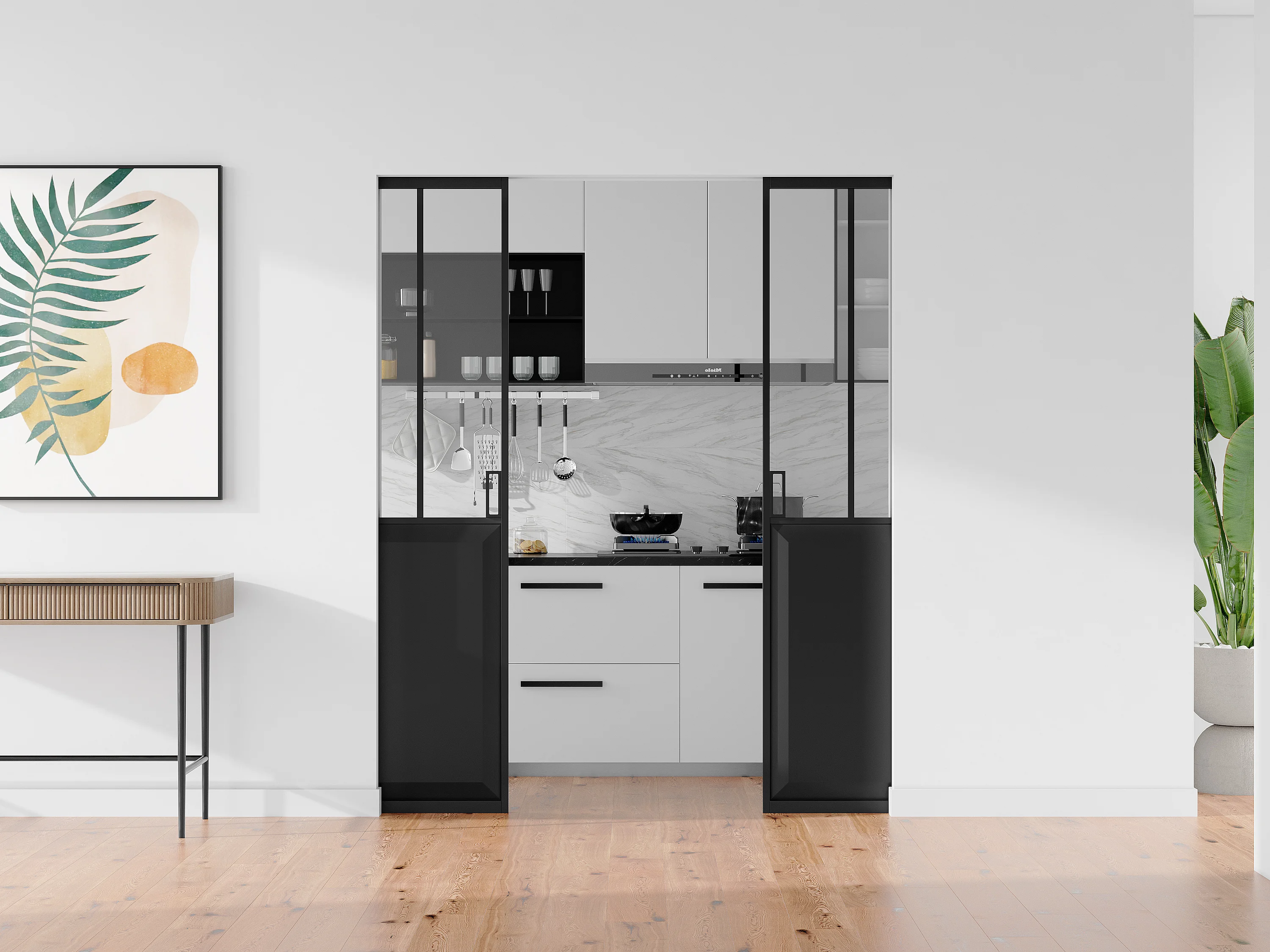 Porte coulissante double atelier avec système à galandage - Noir et verre trempé - 2 x H205 x L73 cm - ARTISTO II