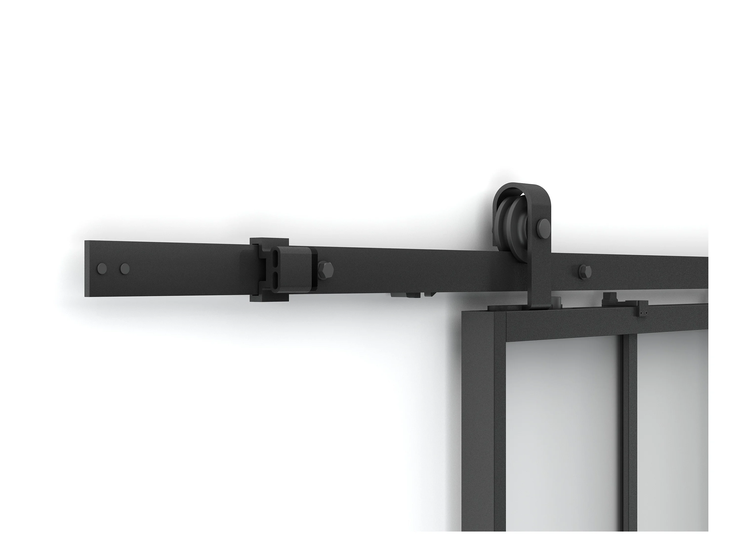 Porte coulissante double atelier avec système en applique - Noir et verre trempé dépoli - 2 x H205 x L93 cm - ARTISTO II