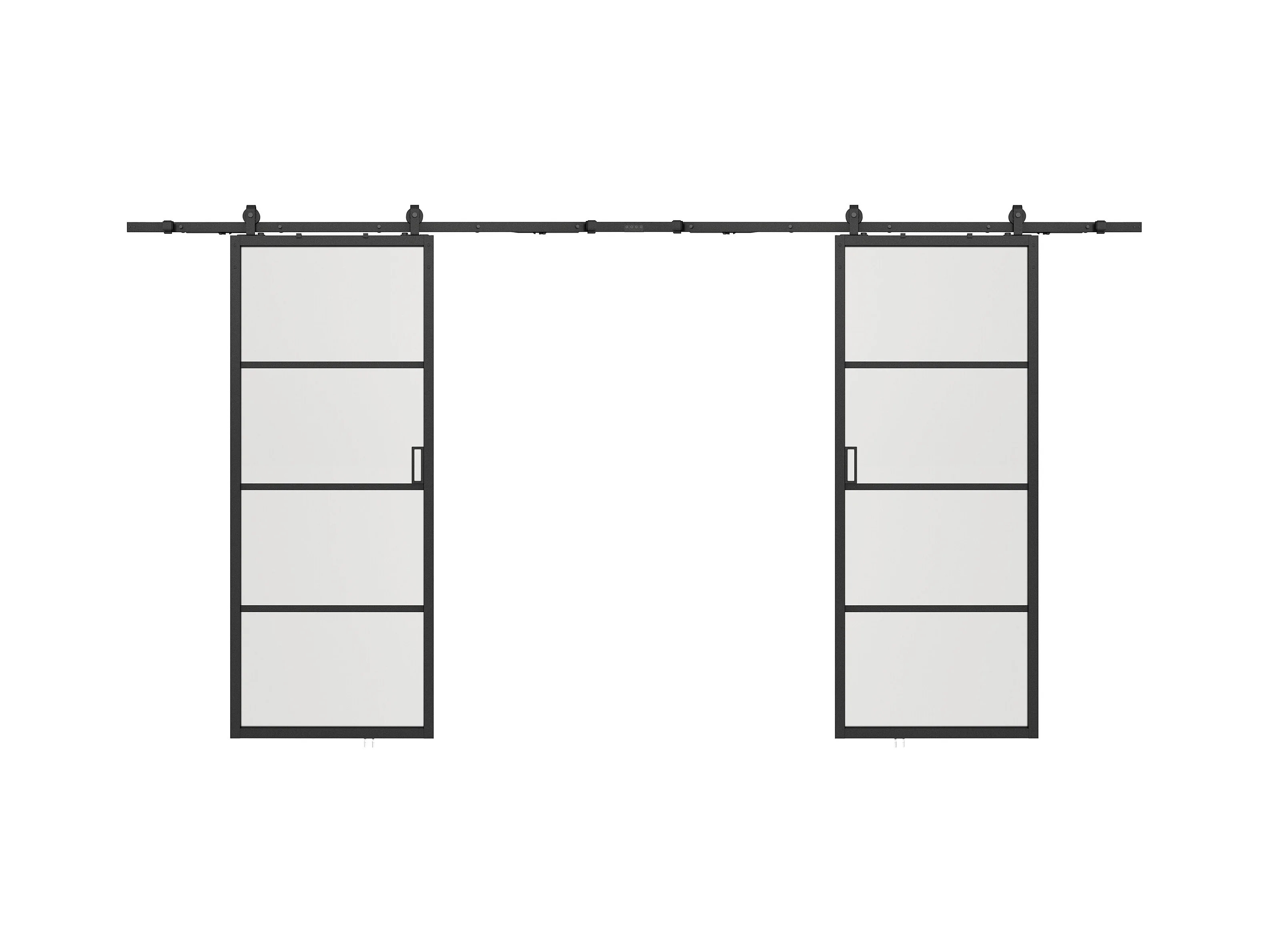 Porte coulissante double avec système en applique - aluminium et verre trempé transparent - 2 x H205 x L83 cm - SINCA II