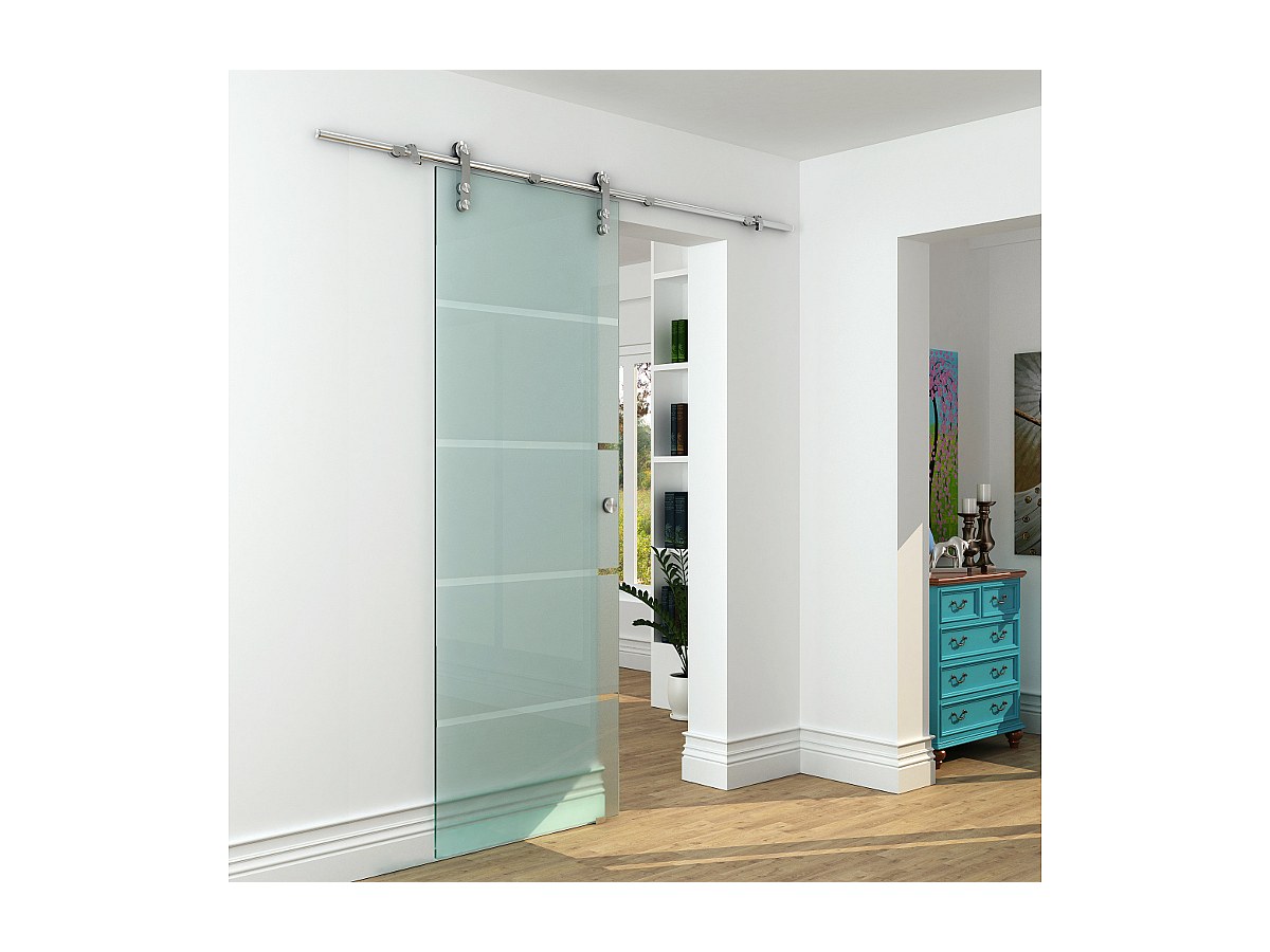 Porte coulissante en applique GLASSY - H205 x L73 cm - Verre trempé