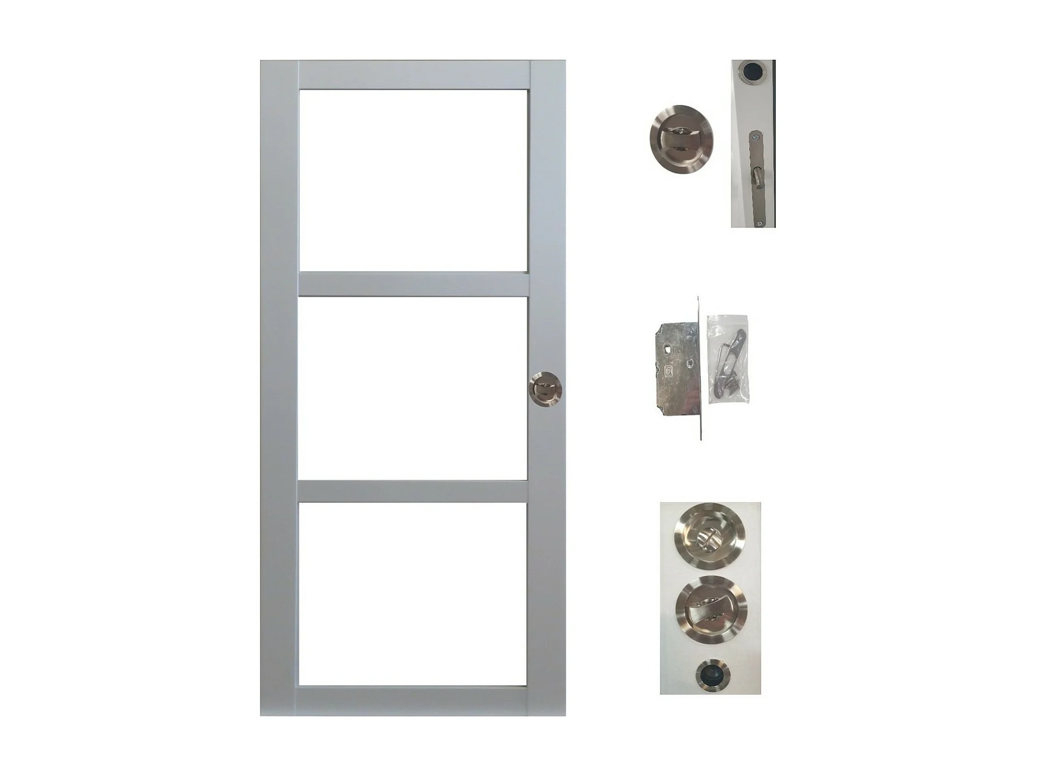 Porte Coulissante Greyria Gris Clair Ral7035 Vitrage Transparent H204 X L73 + Serrure A Condamnation Gd Menuiseries