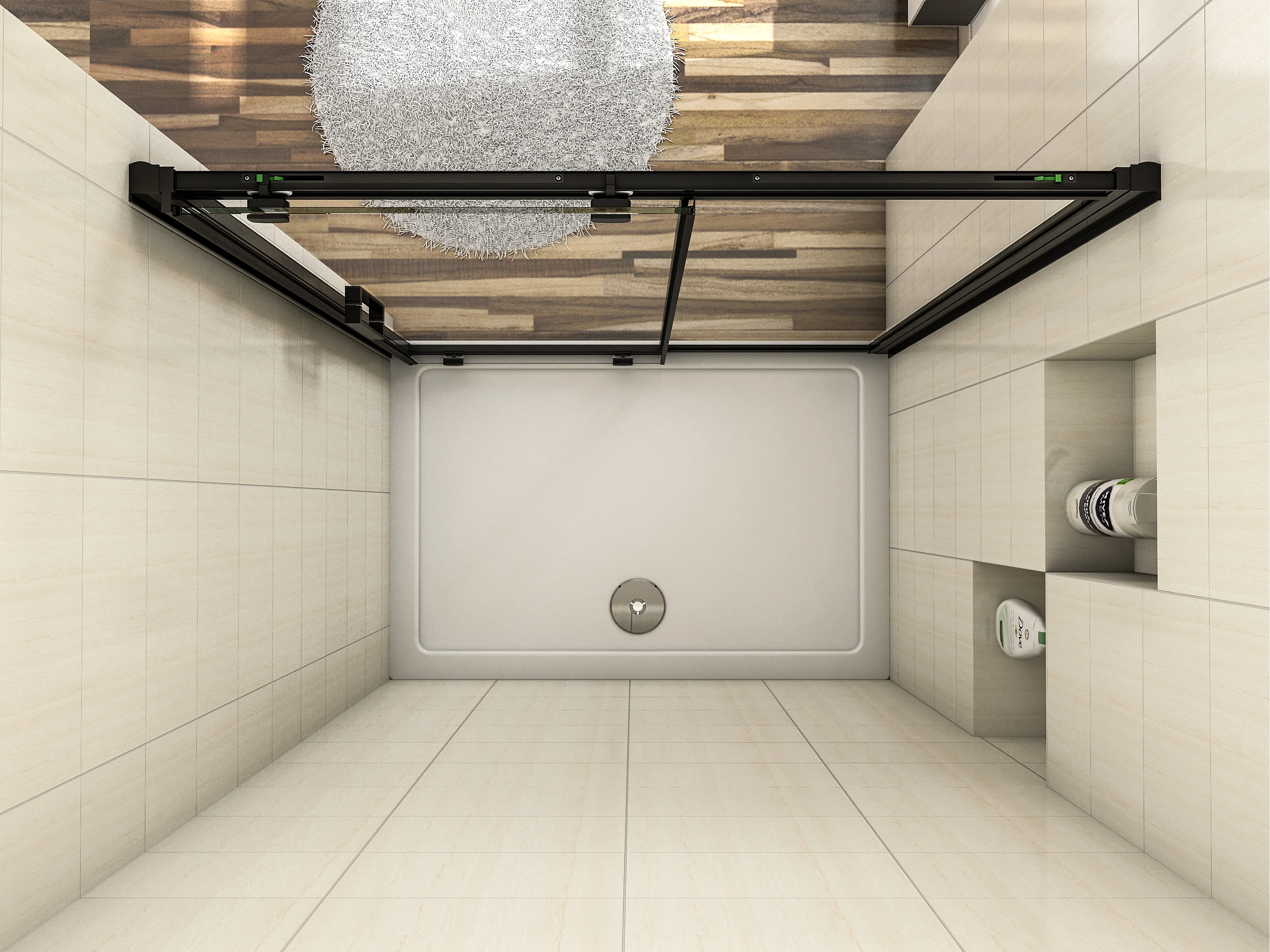 Porte de douche noir mat coulissante 160x195cm – Verre 8mm sécuritaire anti-calcaire avec amortisseur