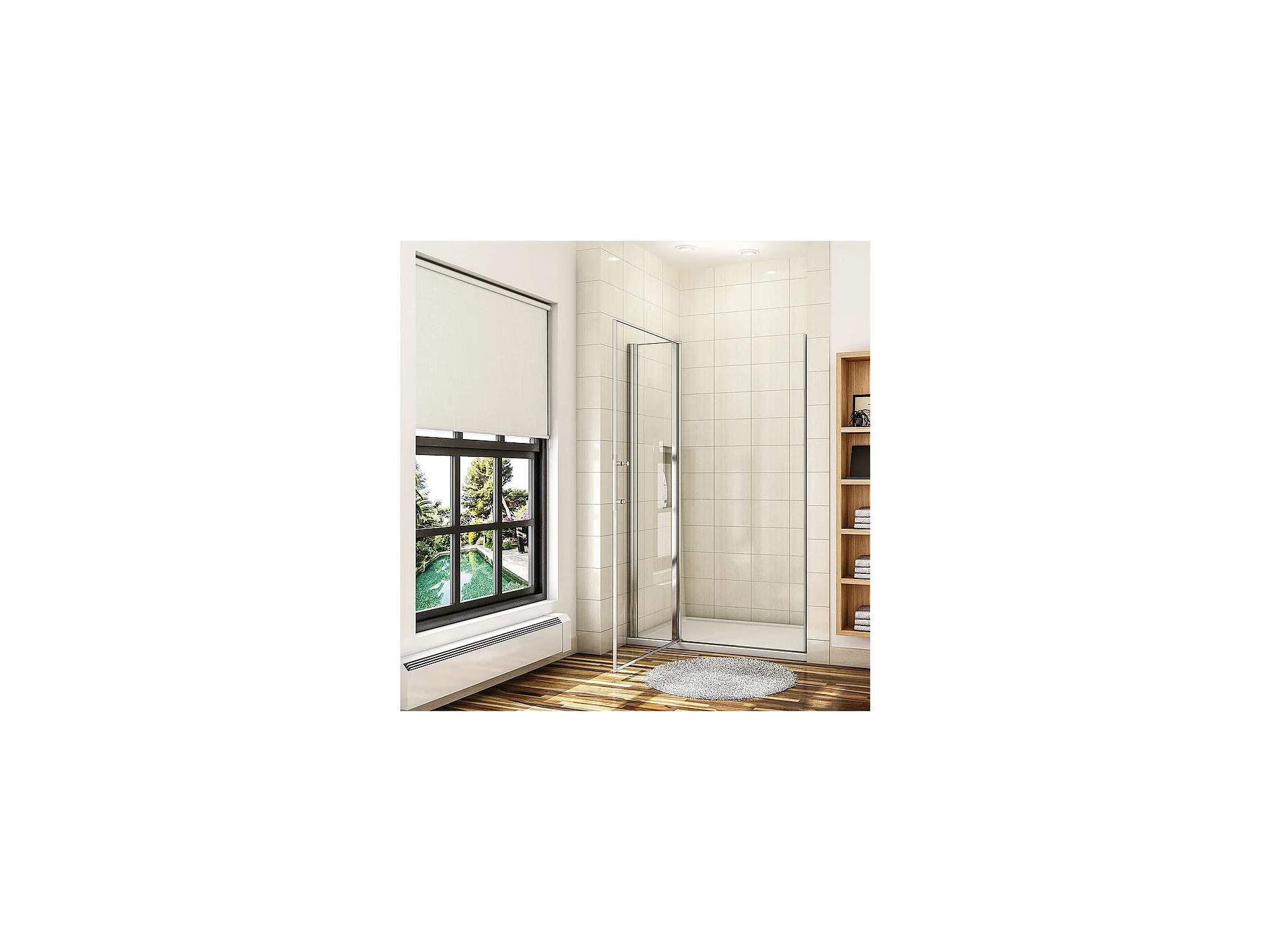 Paroi de douche pivotante 90x185cm en 6mm verre sécurité anticalcaire, installation en niche