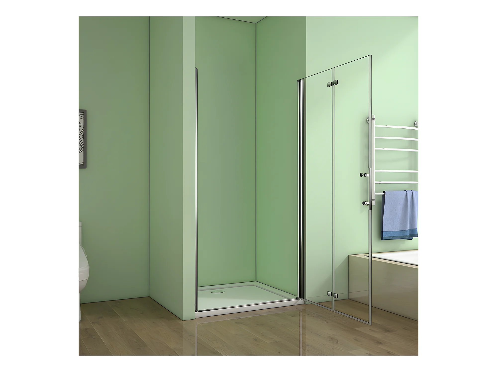 Porte de douche pivotante et pliante porte de douche 110x185cm en 6mm verre trempé anticalcaire