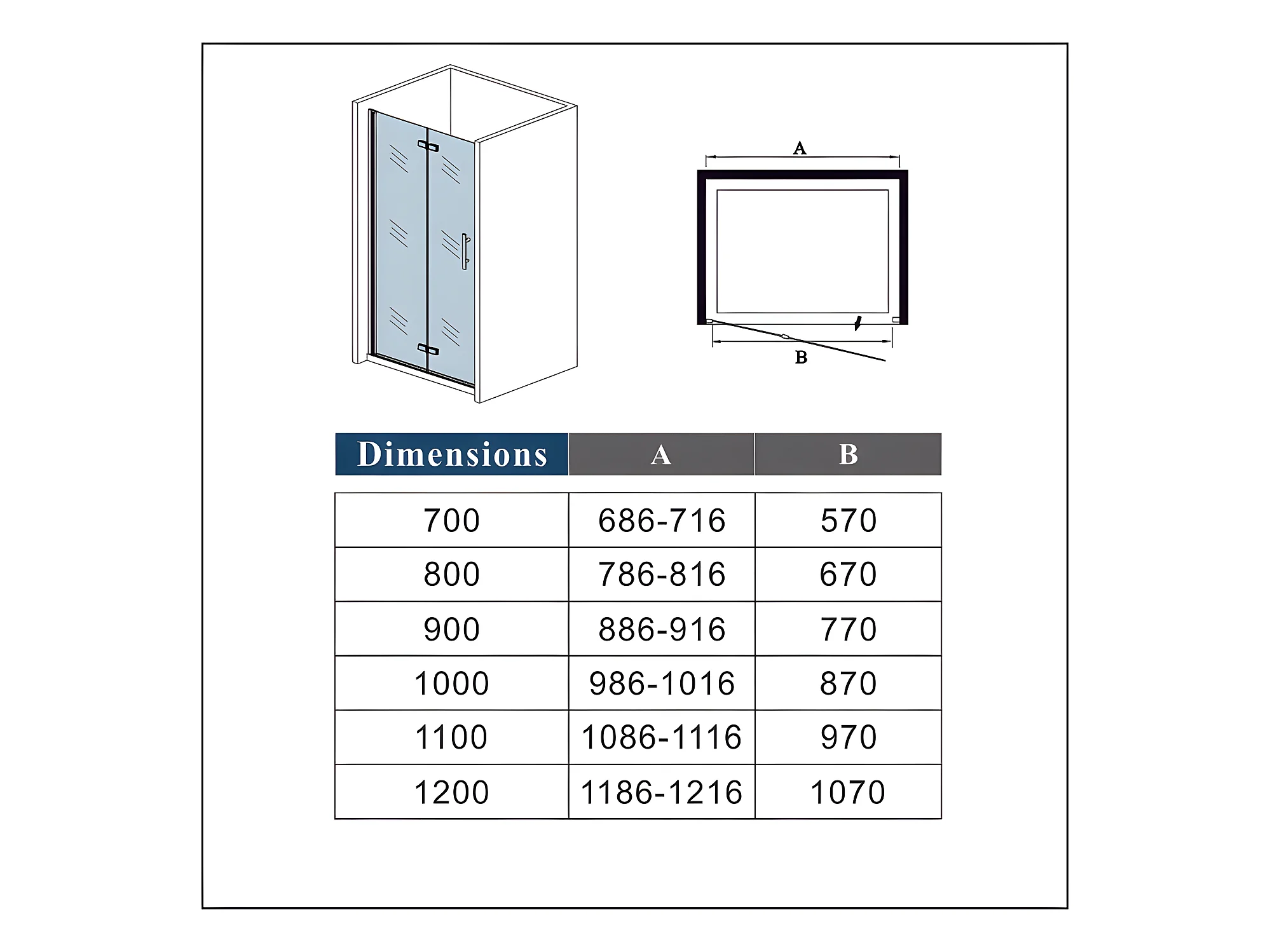 Porte de douche pivotante et pliante porte de douche 110x195cm en 6mm verre trempé anticalcaire
