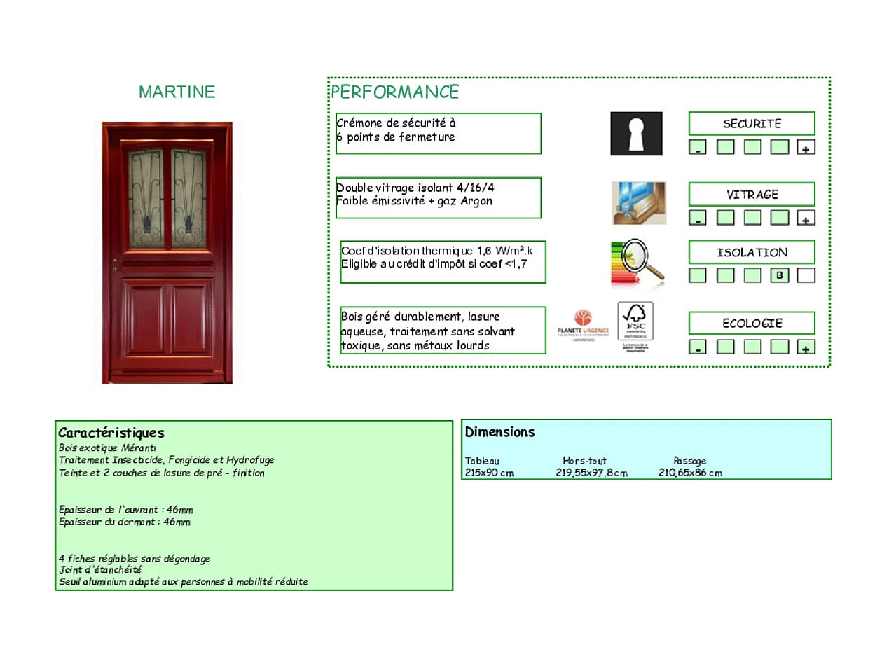 Porte D'entrée Bois Vitrée Martine Rouge Ral 3004, H.215xl.90 Côte Tableau P. Gauche Gd Menuiseries