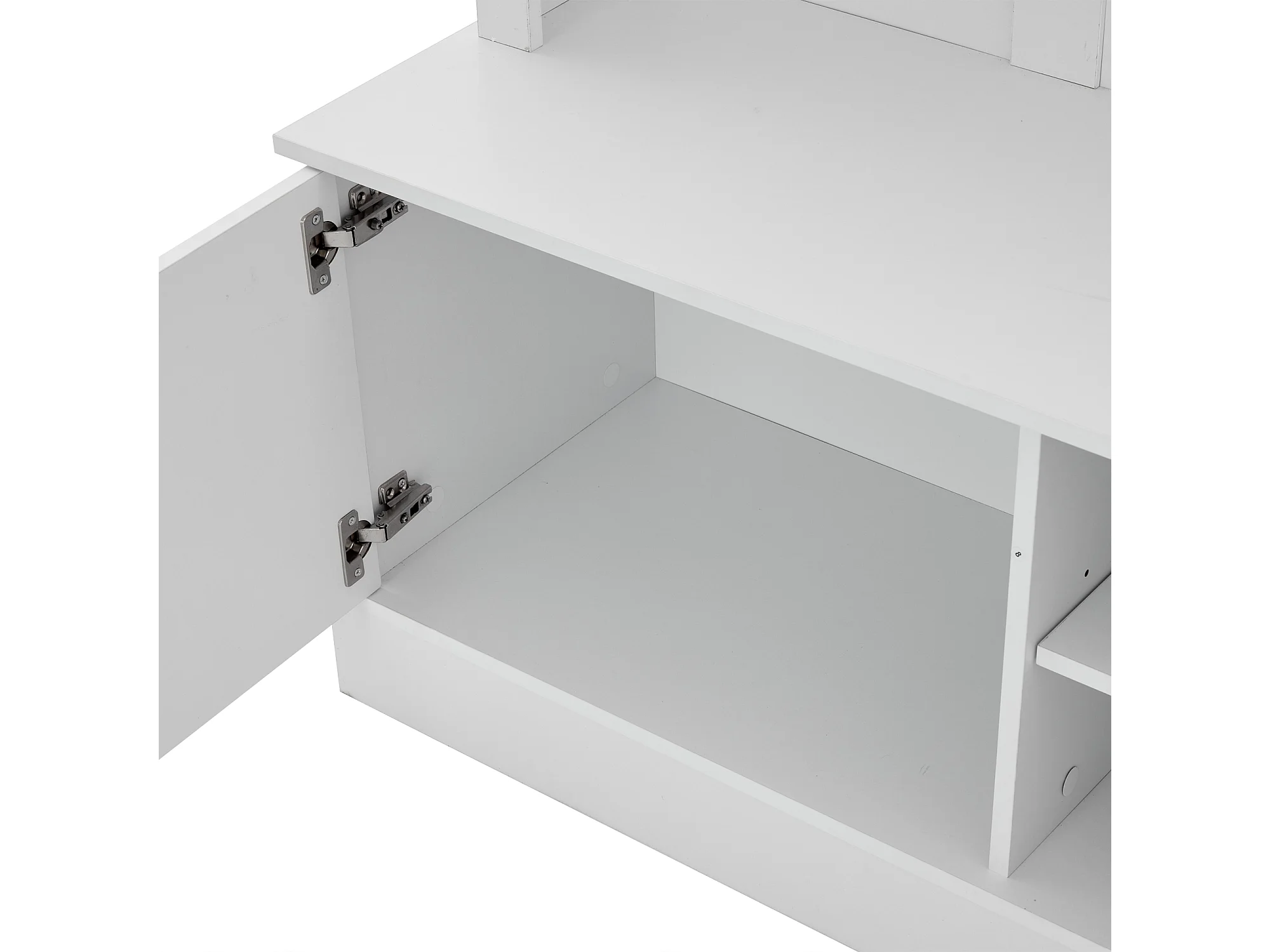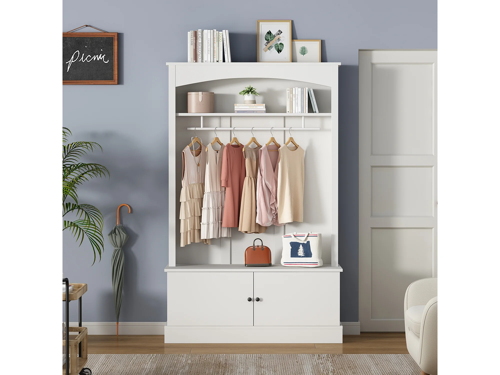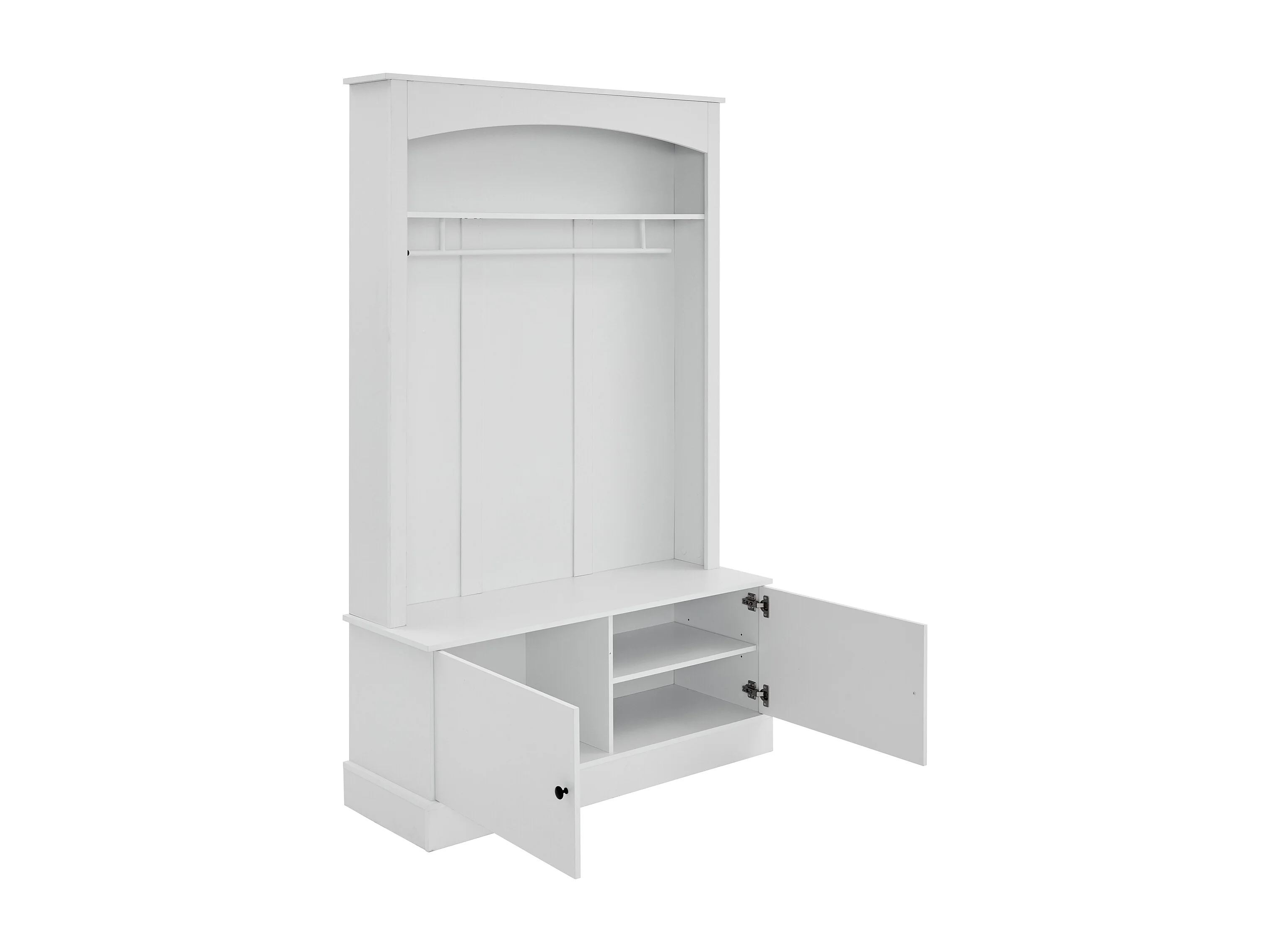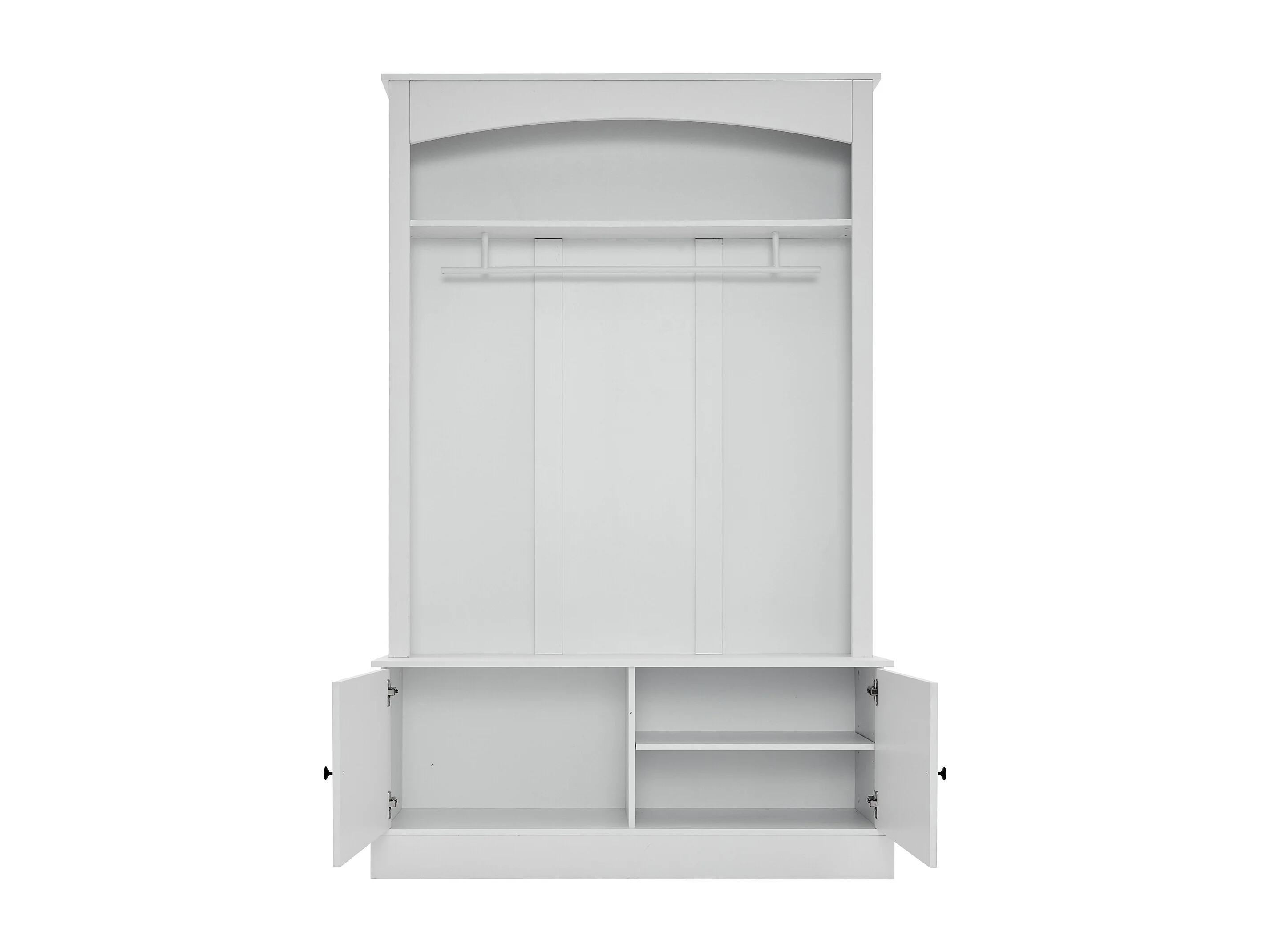 Porte manteau blanc à 2 portes - Vestiaire avec tringle à vêtements et étagères ouvertes - etagères réglables