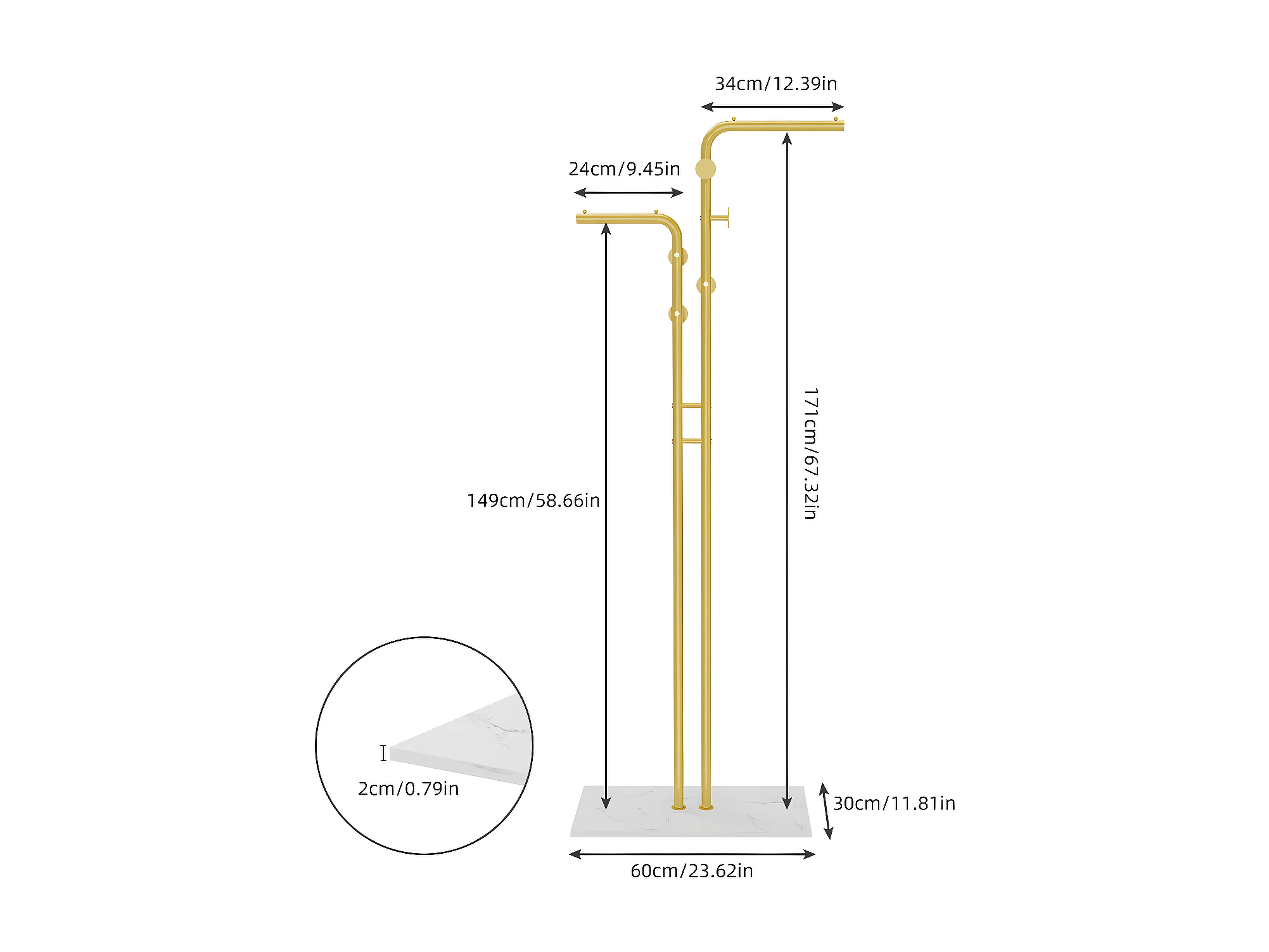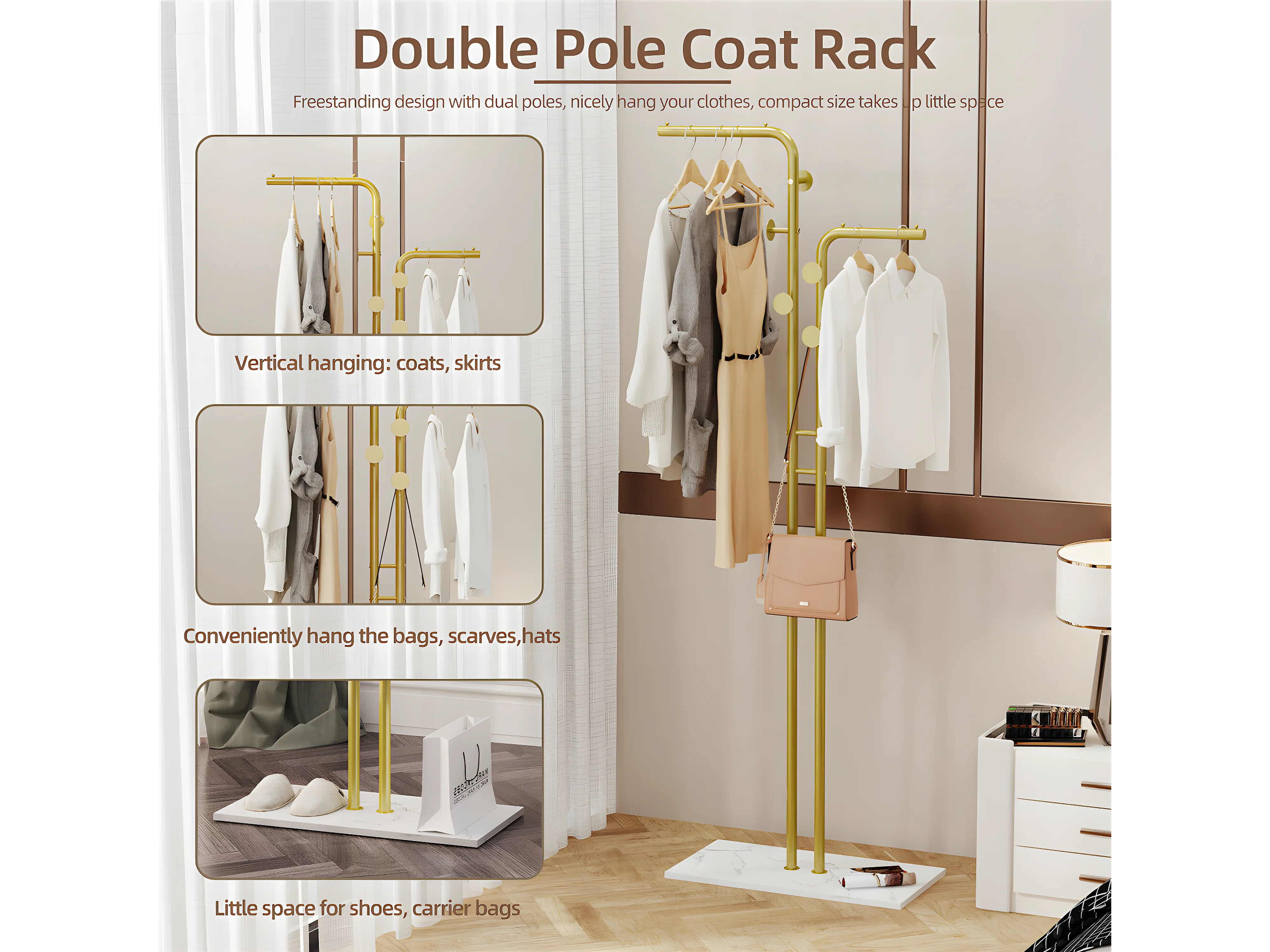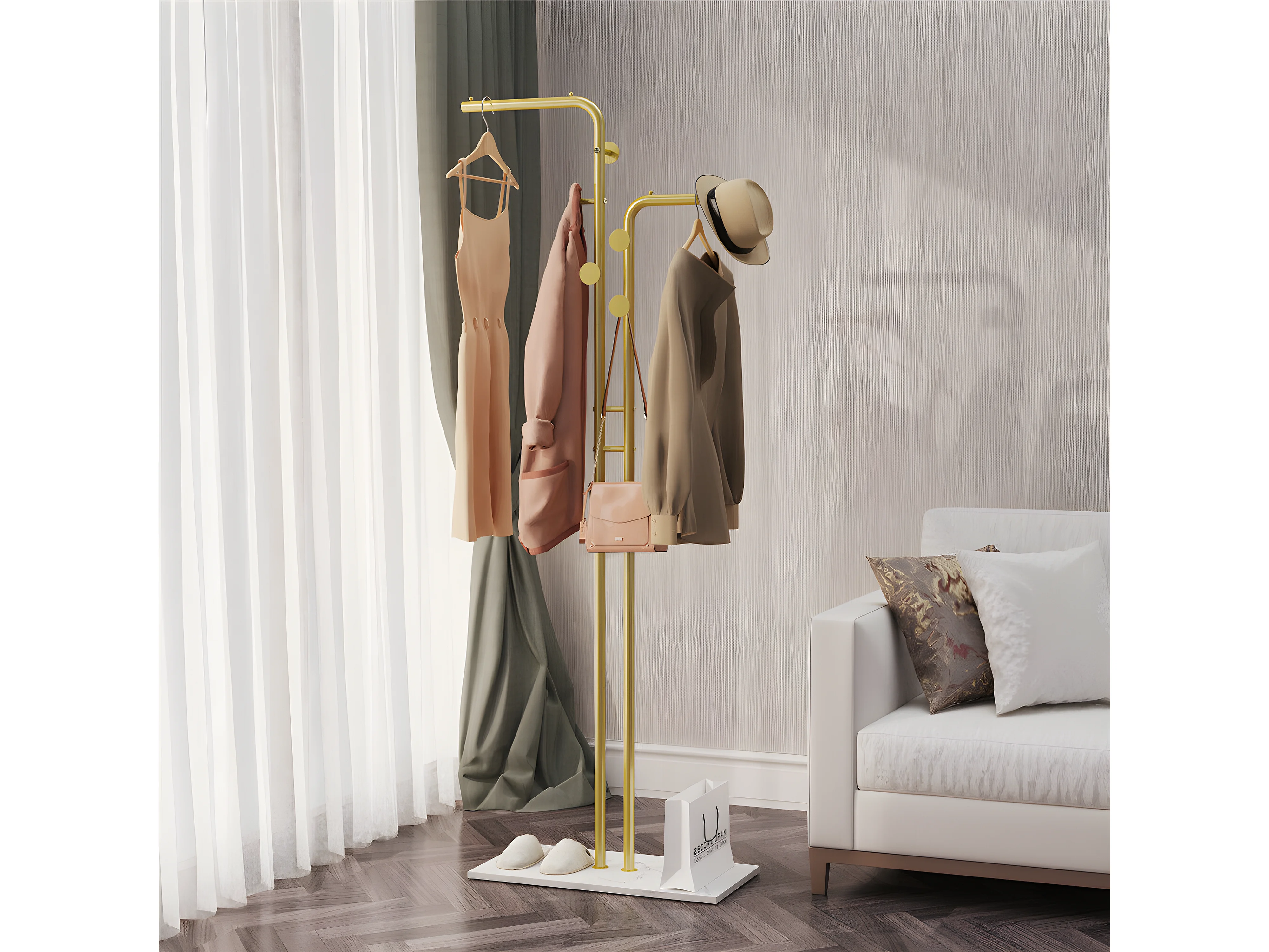 Porte Manteau sur Pieds d’entrée Portant Vêtement Portemanteaux en Pierre Fritté Blanc -H176cm