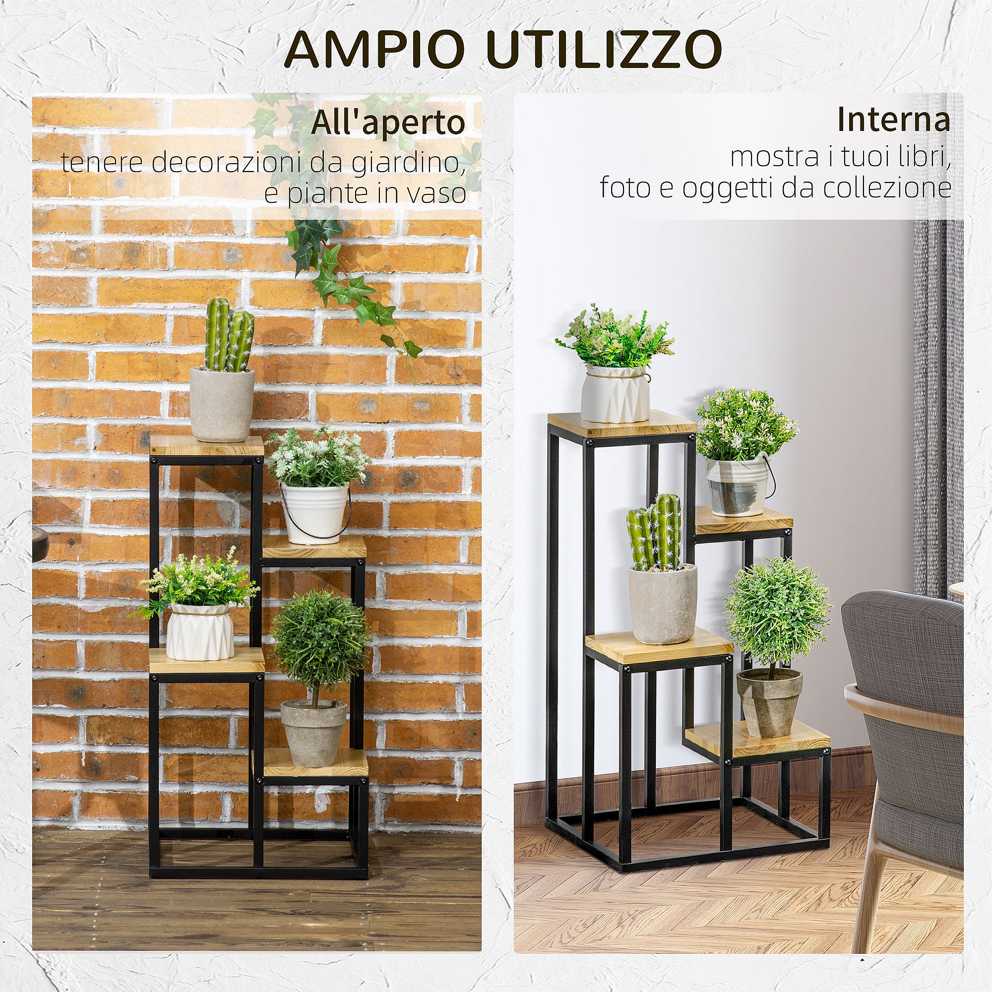 Porte-plantes style industriel 4 étagères - dim. 34L x 34l x 66H cm - métal sapin verni