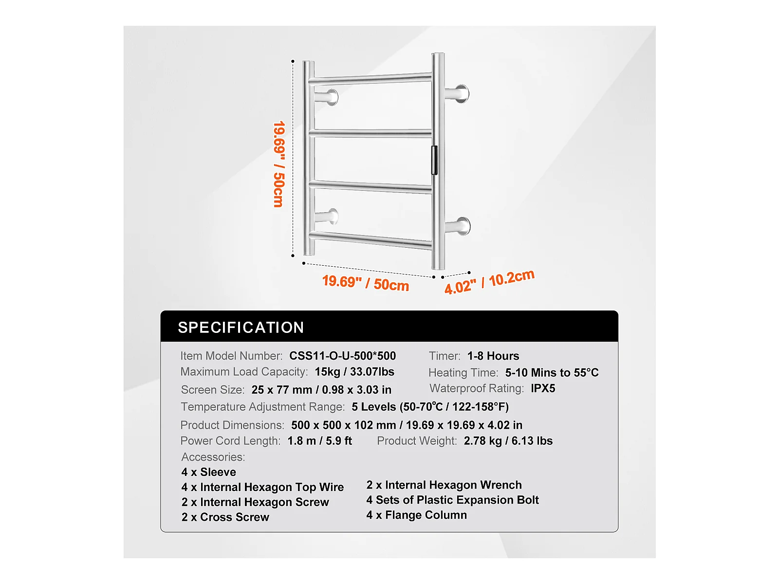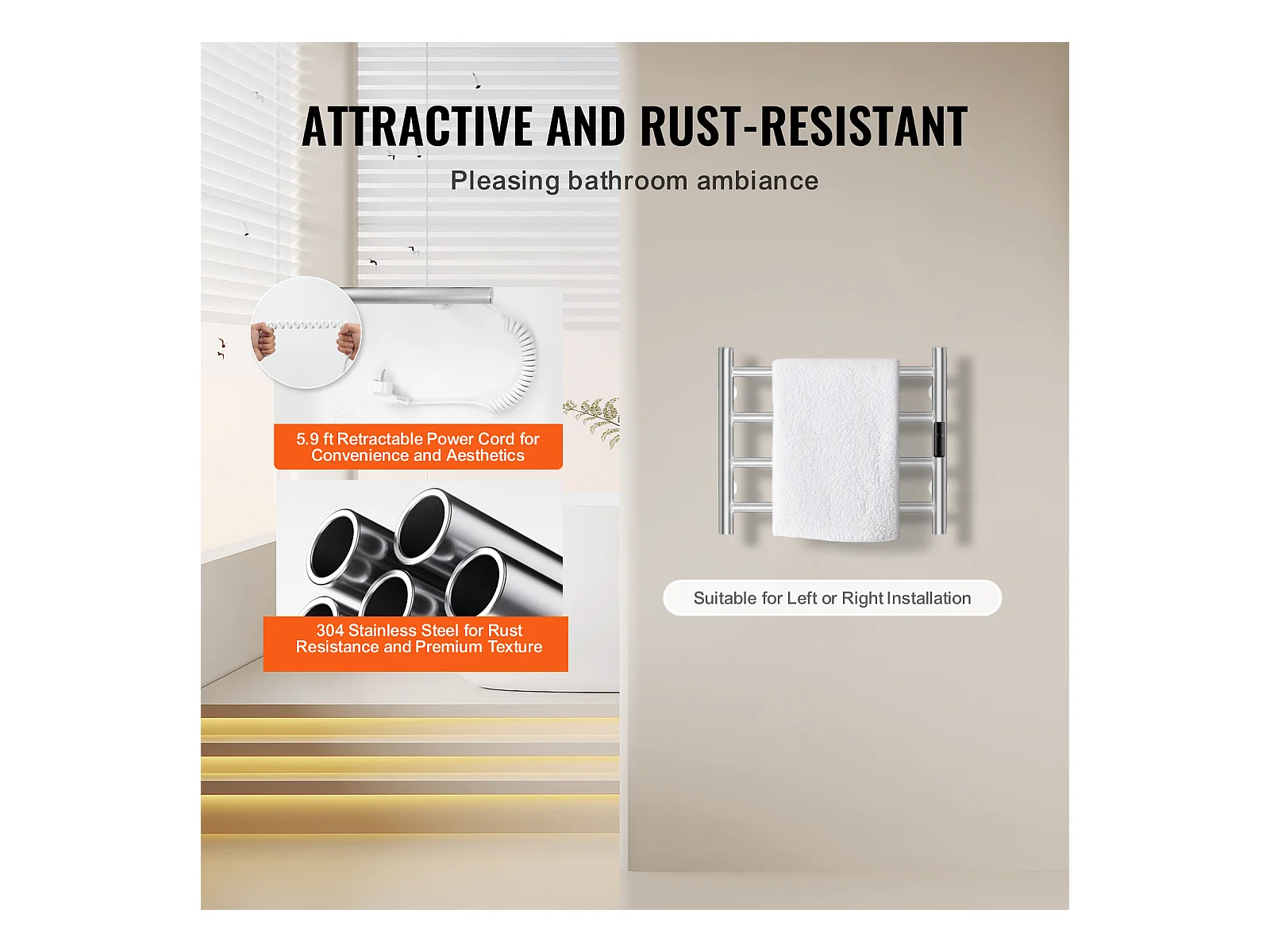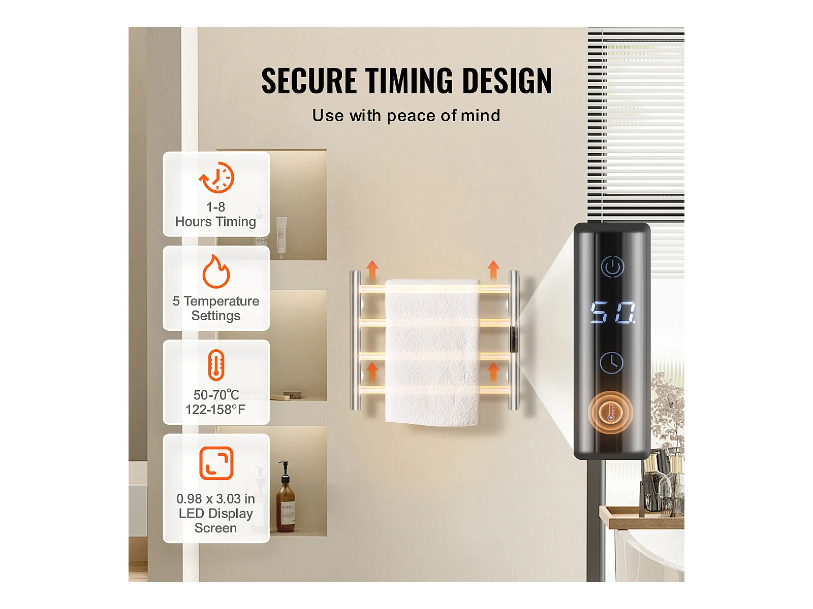 EMKE Sèche Serviettes Mural à 4 Barres, Porte-Serviettes Chauffant pour Salle de Bain, Argent