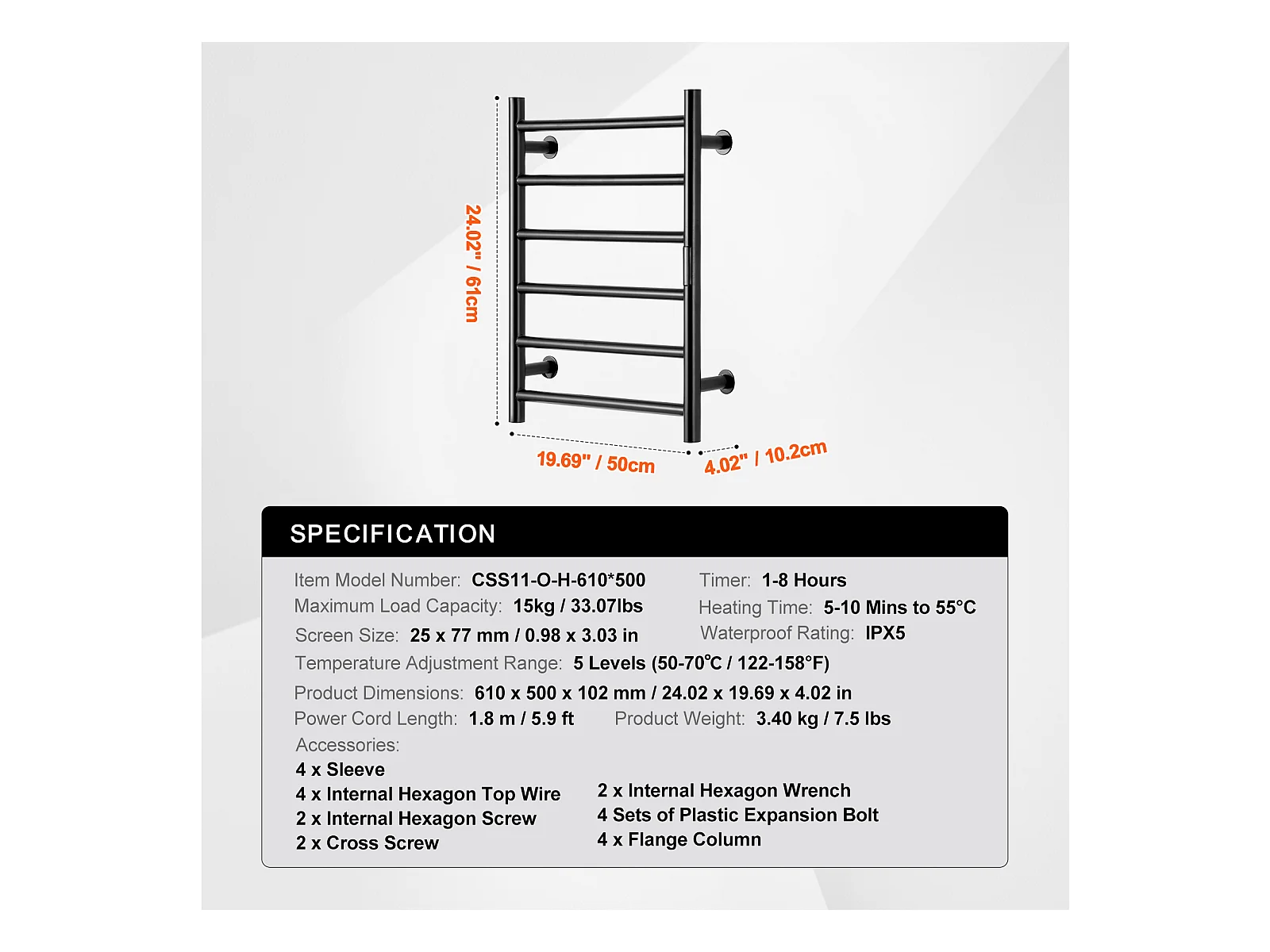 EMKE Porte-Serviettes Mural à 6 Barres, Sèche-Serviettes Chauffant pour Salle de Bain, Noir