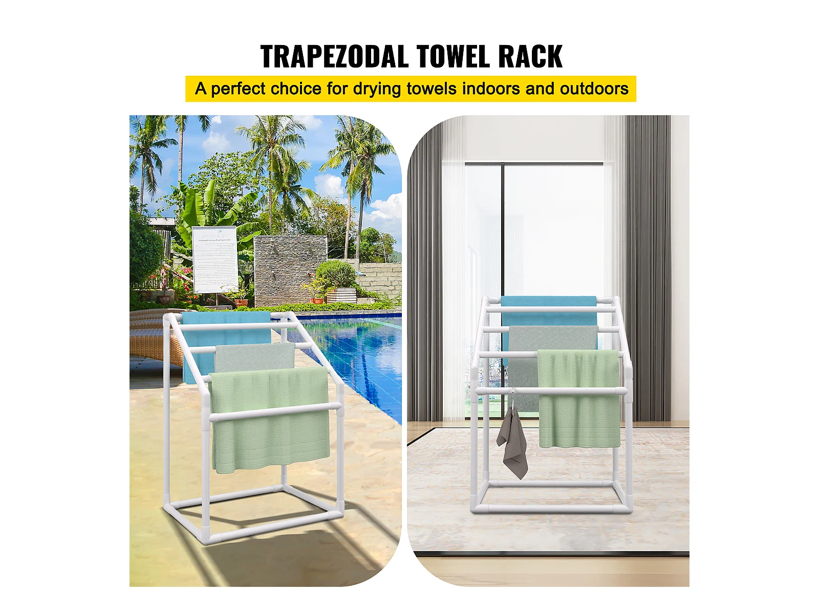 Porte-serviettes, SucceBuy Porte-serviettes d'Extérieur 5 Barres Trapézoïdal Blanc Autoportant pour Piscine