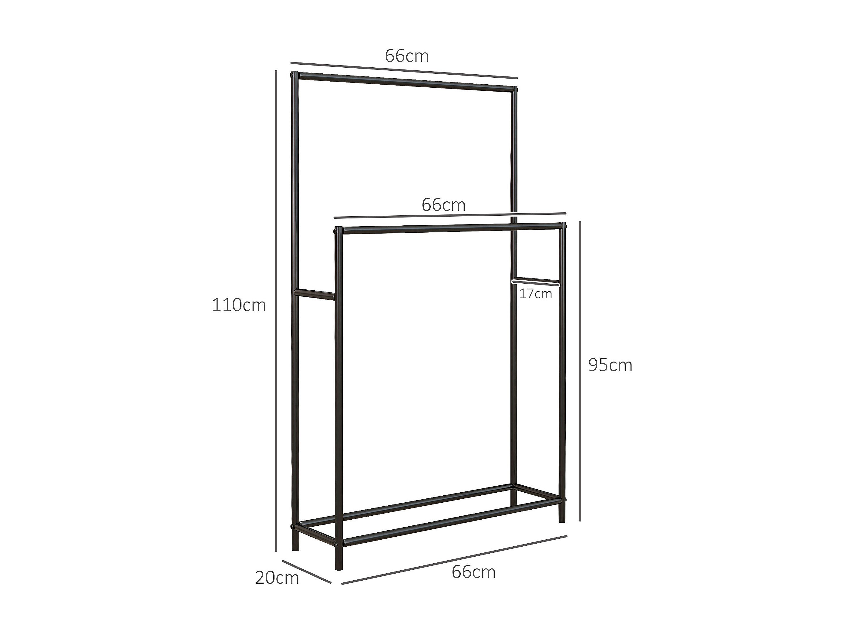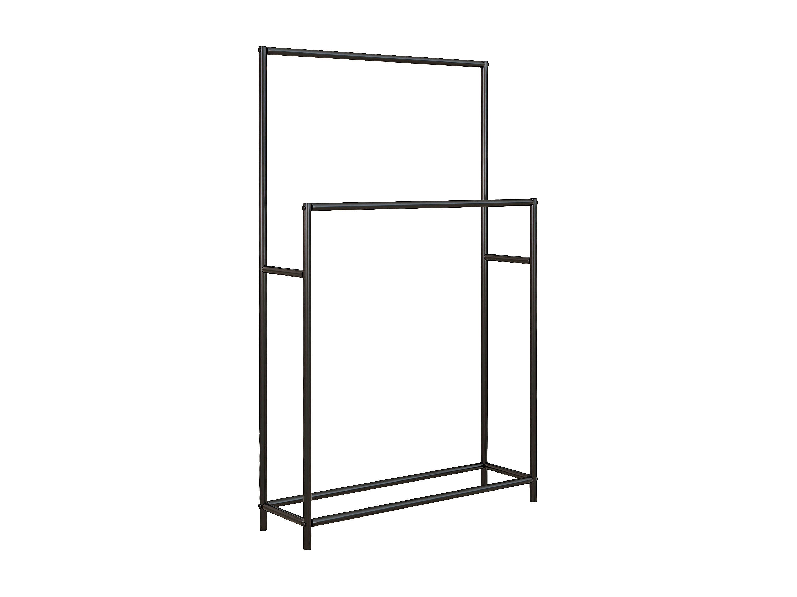 Porte-serviettes sur pied 2 niveaux dim. 66L x 20l x 110H cm métal noir