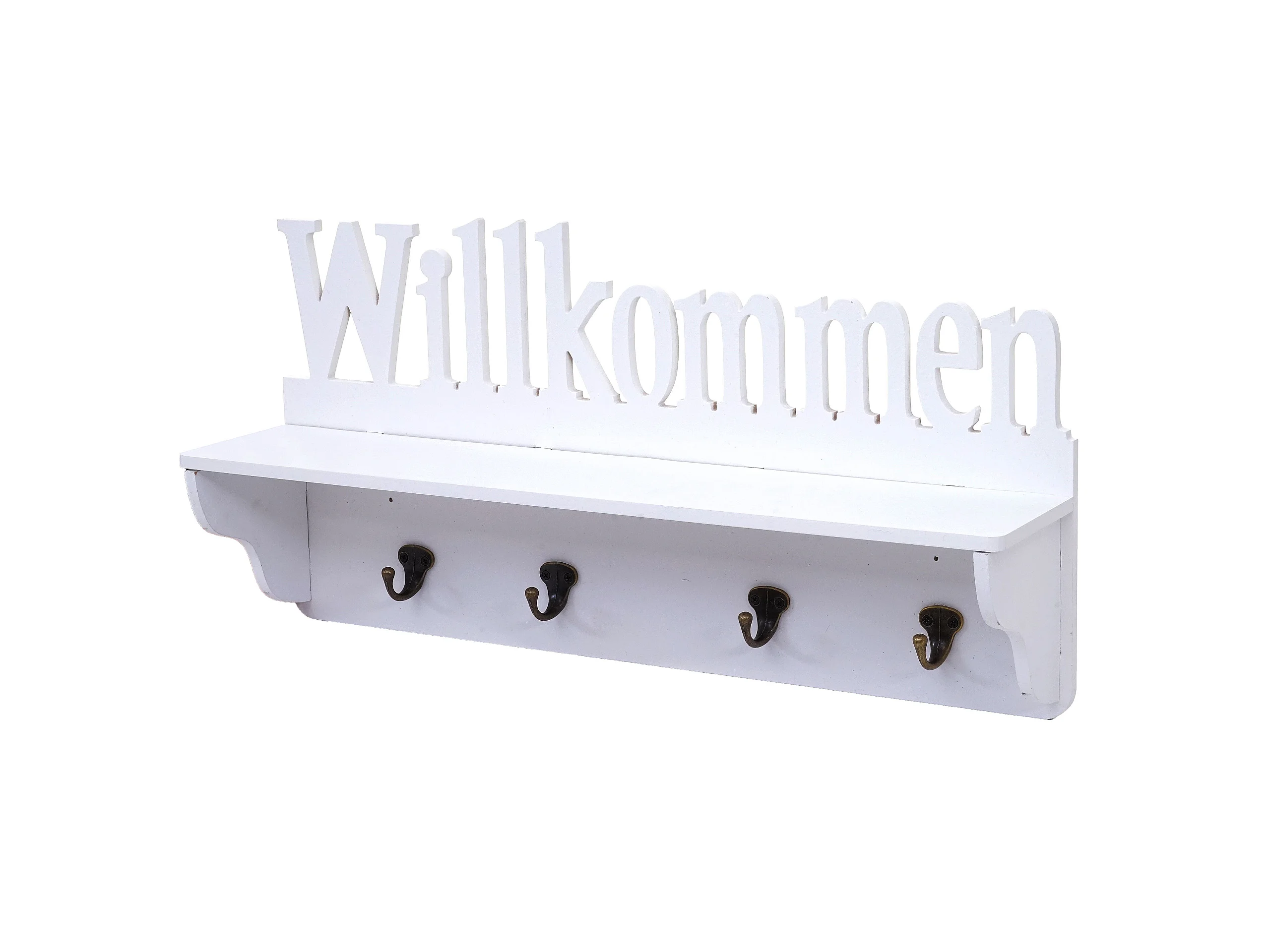 Portemanteau mural MCW-D41 Bienvenue 4 crochets, blanc