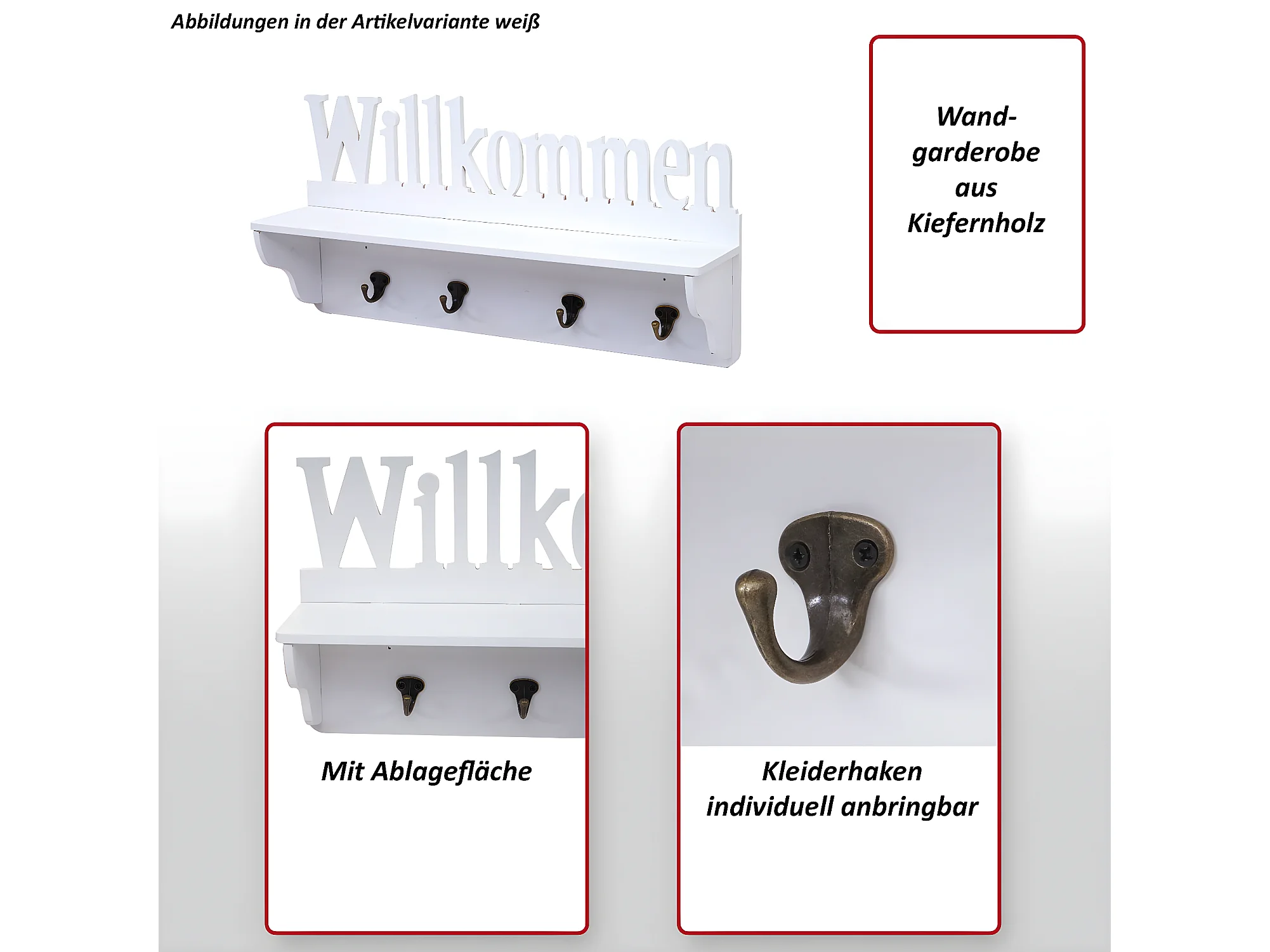 Portemanteau mural MCW-C89 Welcome Shabby, blanc
