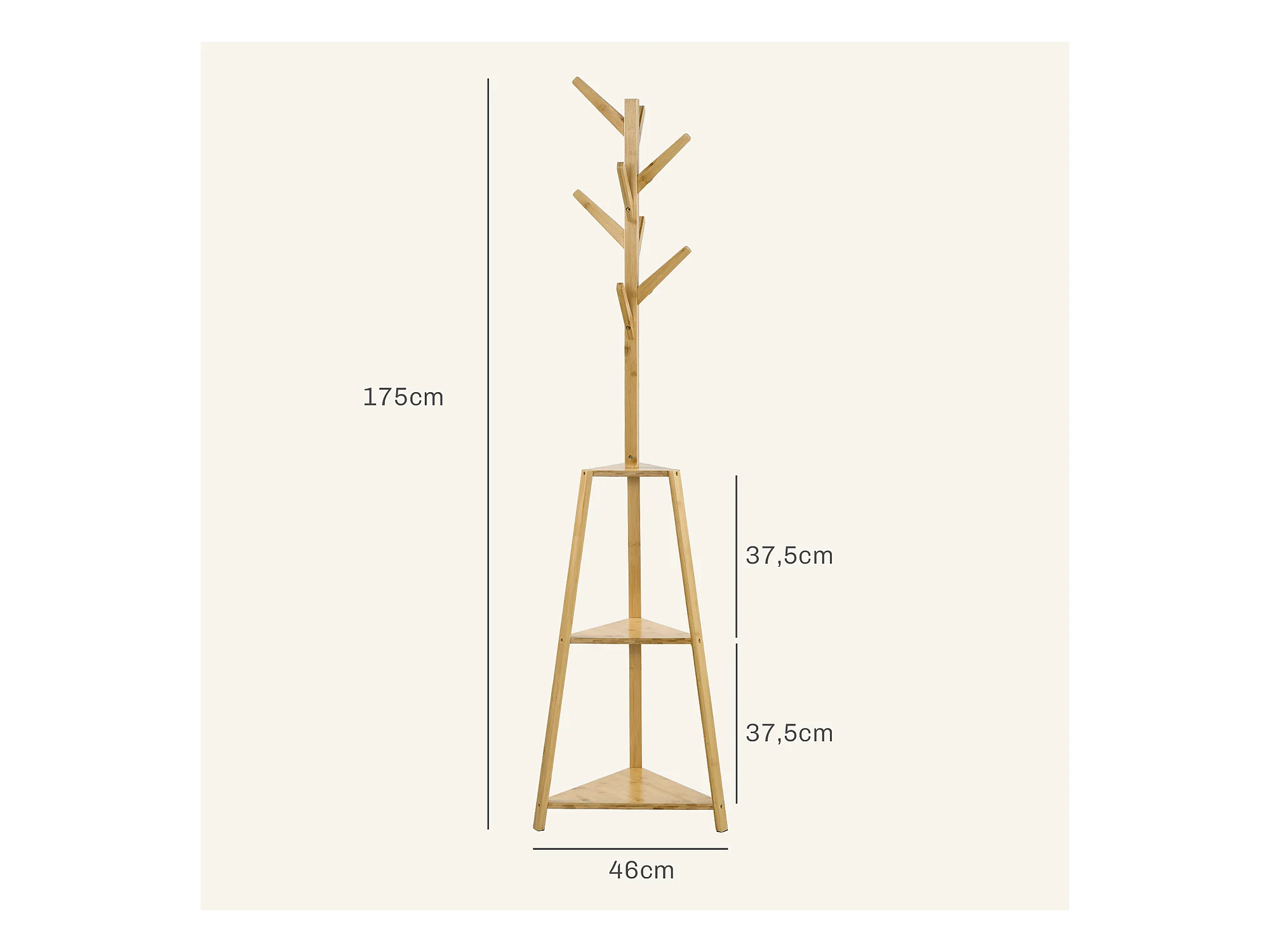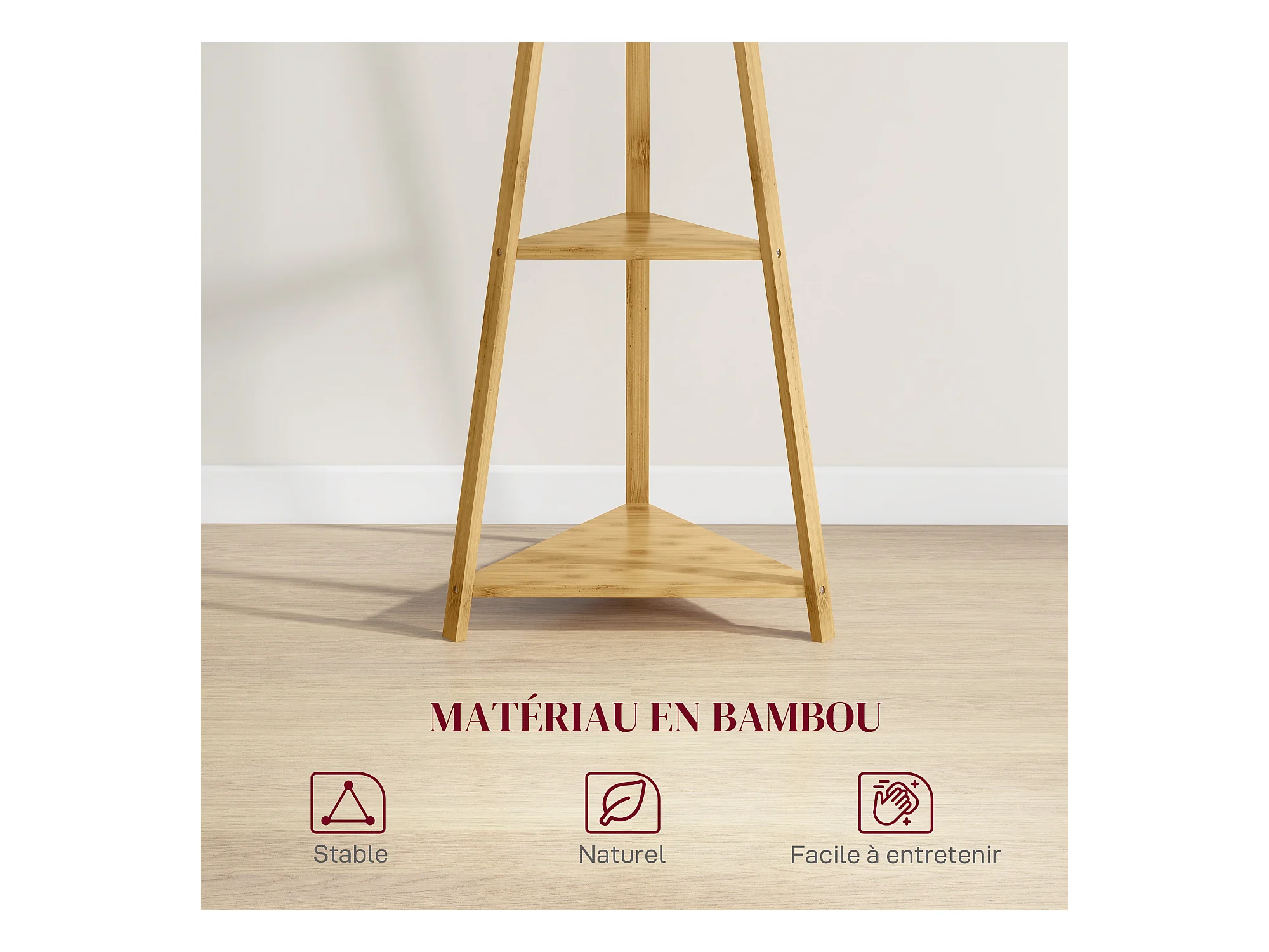 Portemanteau sur pied bois bambou - 8 patères, 3 étagères - dim. 46L x 46l x 175H cm
