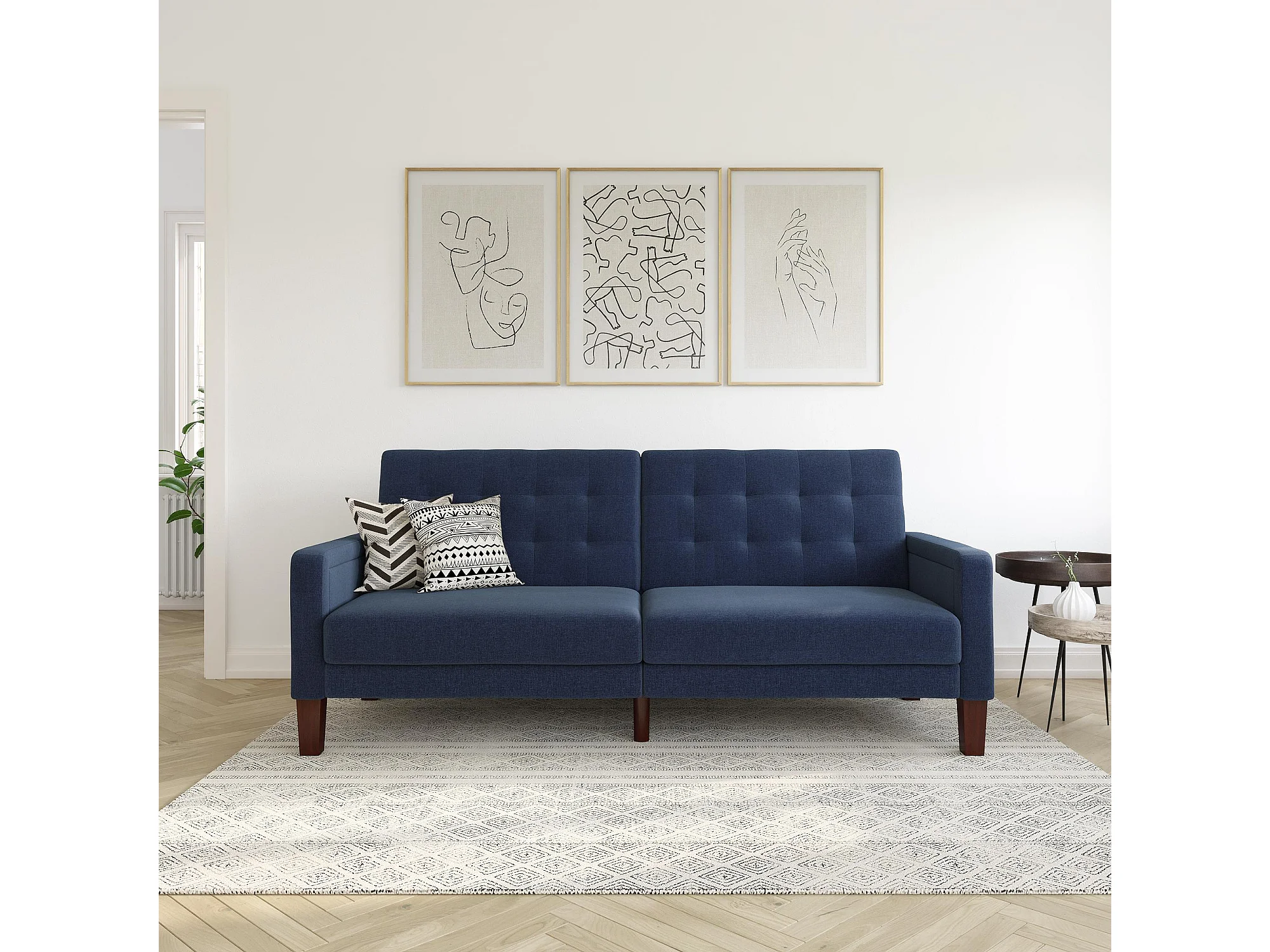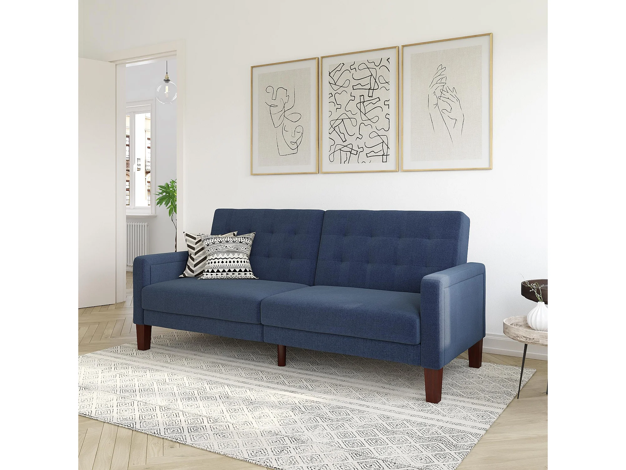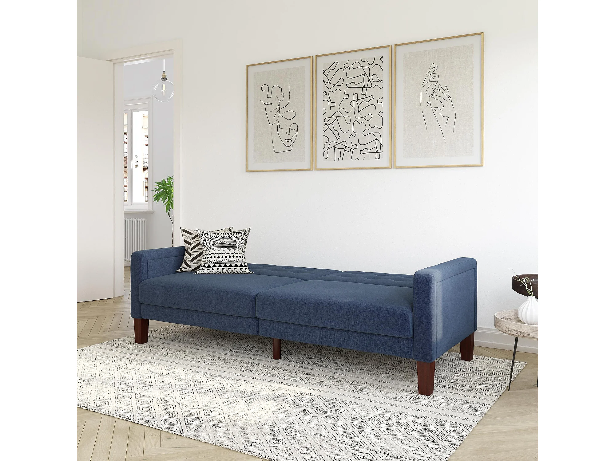 Porter | Canapé lit 3 places en lin bleu marine