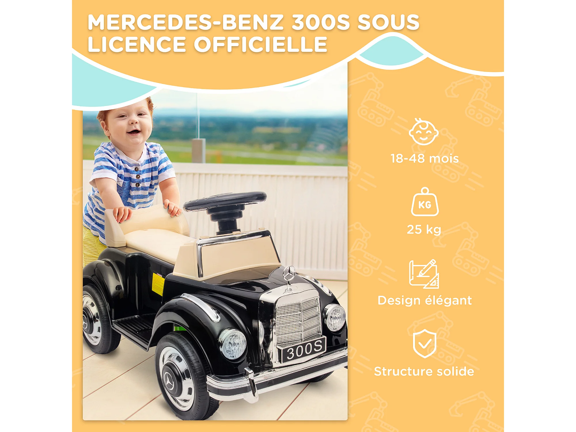 Porteur enfant voiture licence Mercedes-Benz 300S coffre butée arrière anti-basculement noir
