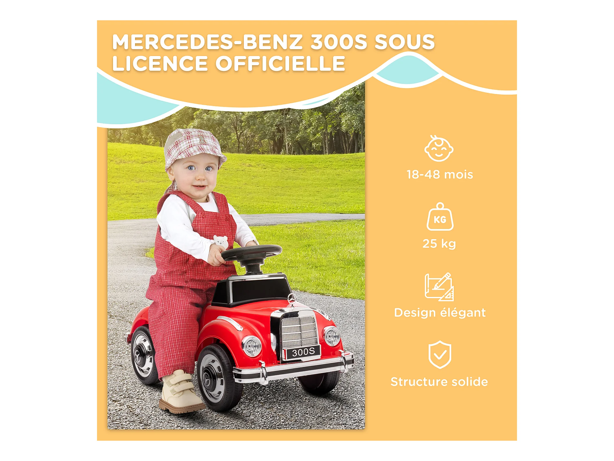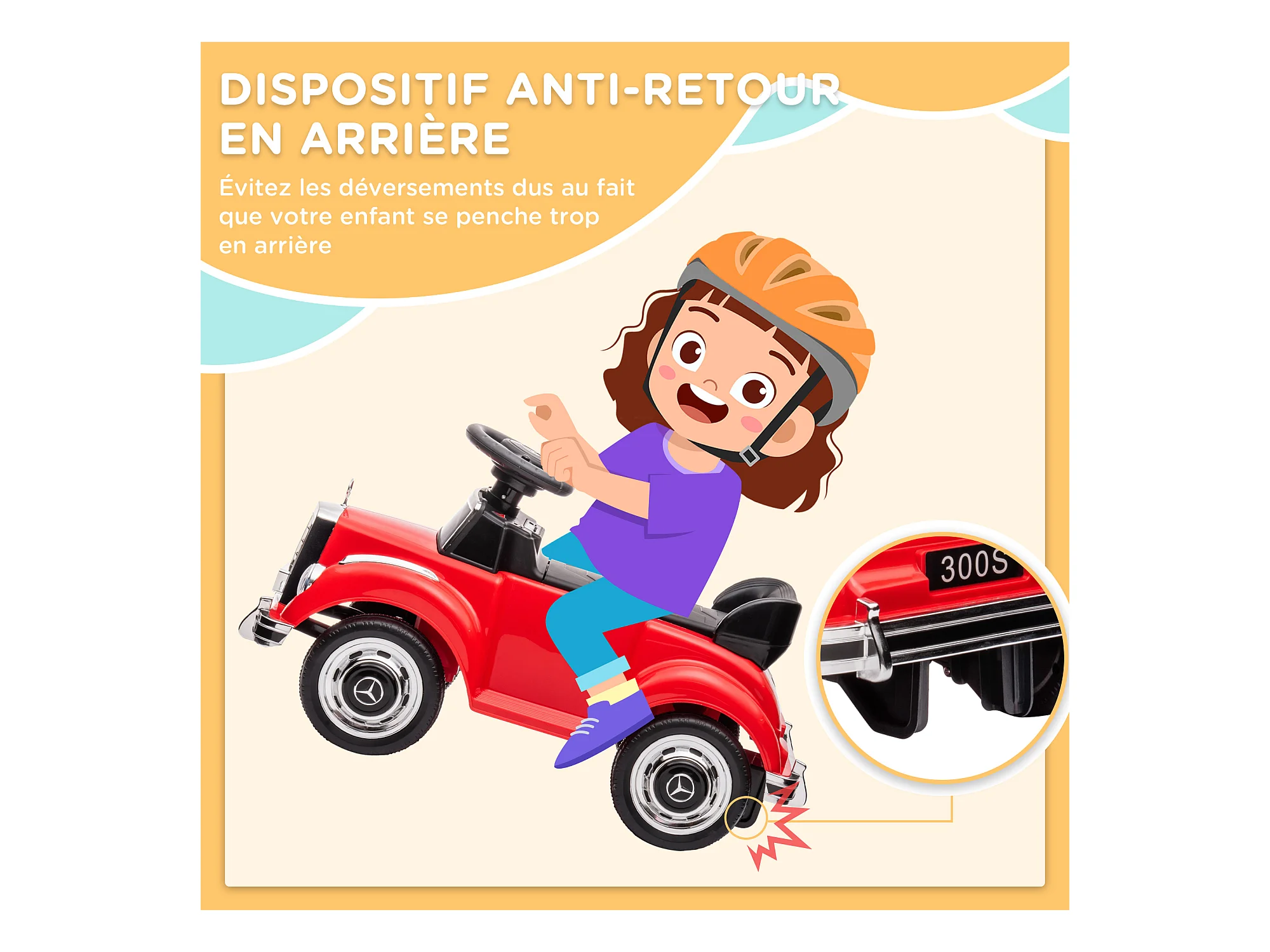Porteur enfant voiture licence Mercedes-Benz 300S coffre butée arrière anti-basculement rouge