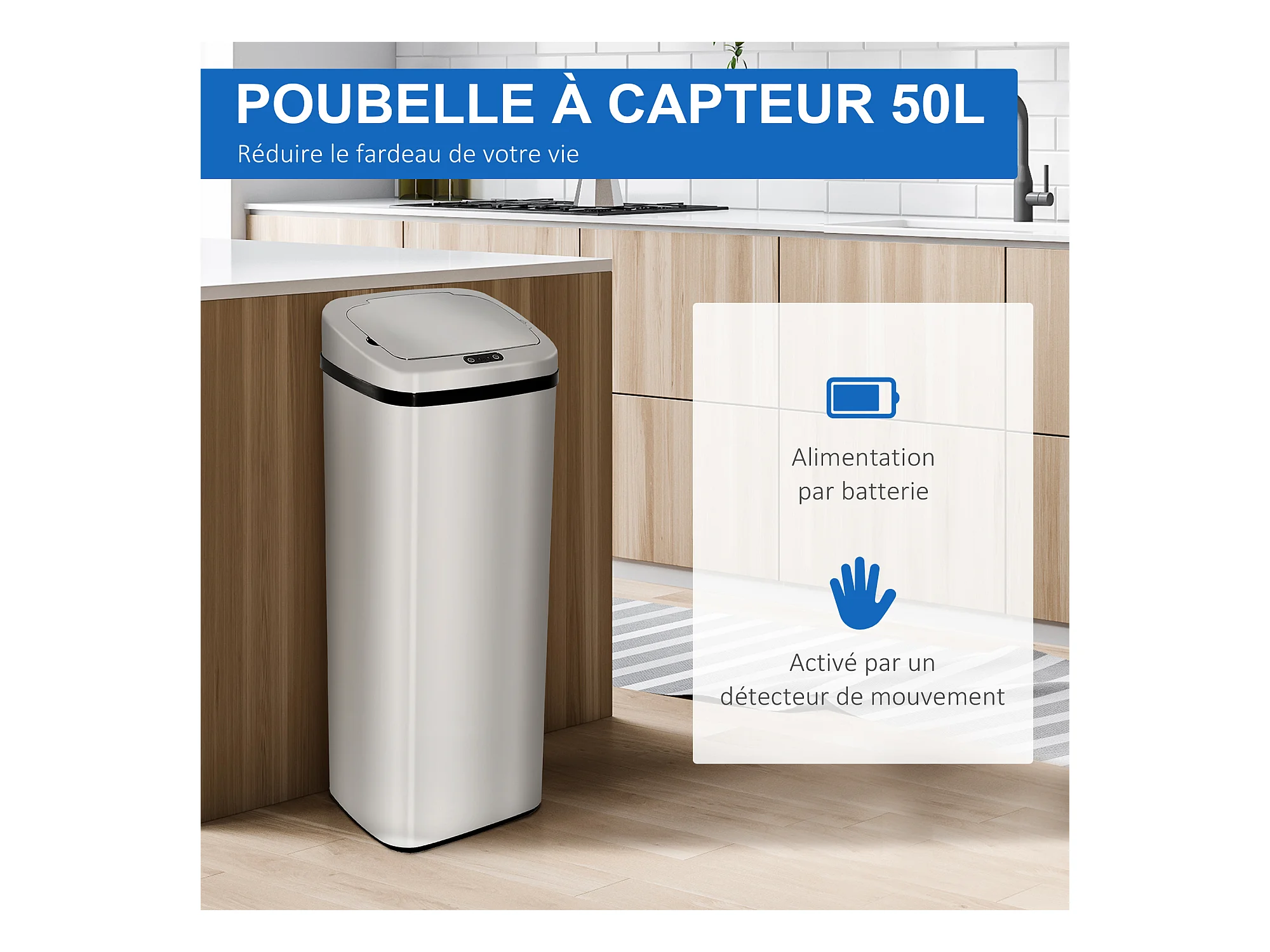 Poubelle à capteur de mouvement ouverture automatique 50L acier inox.