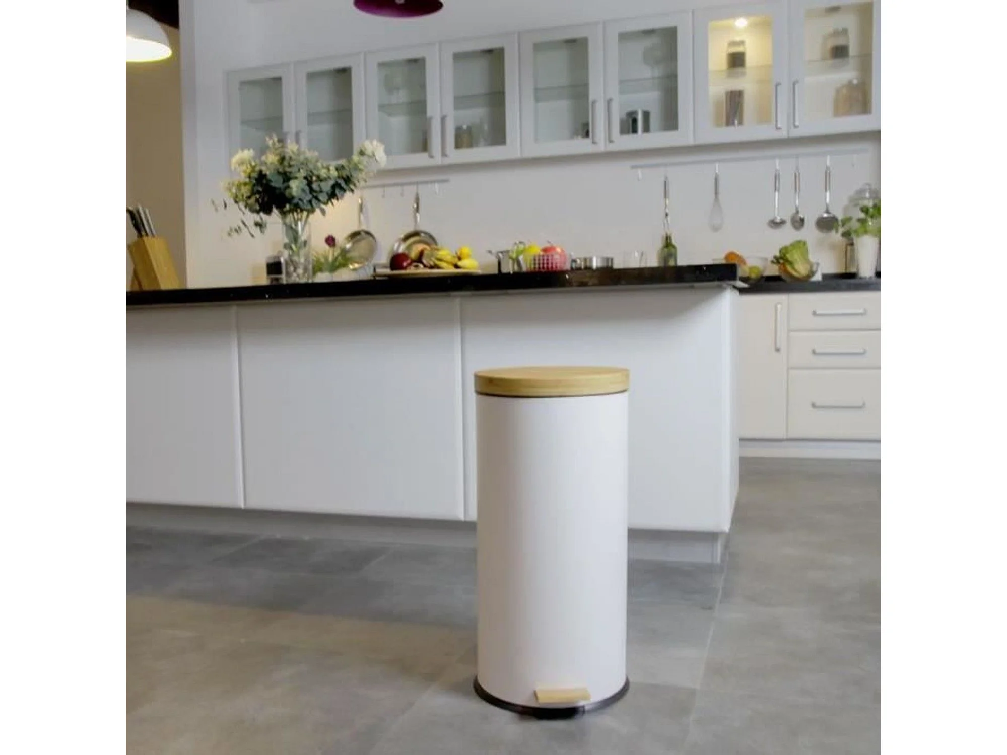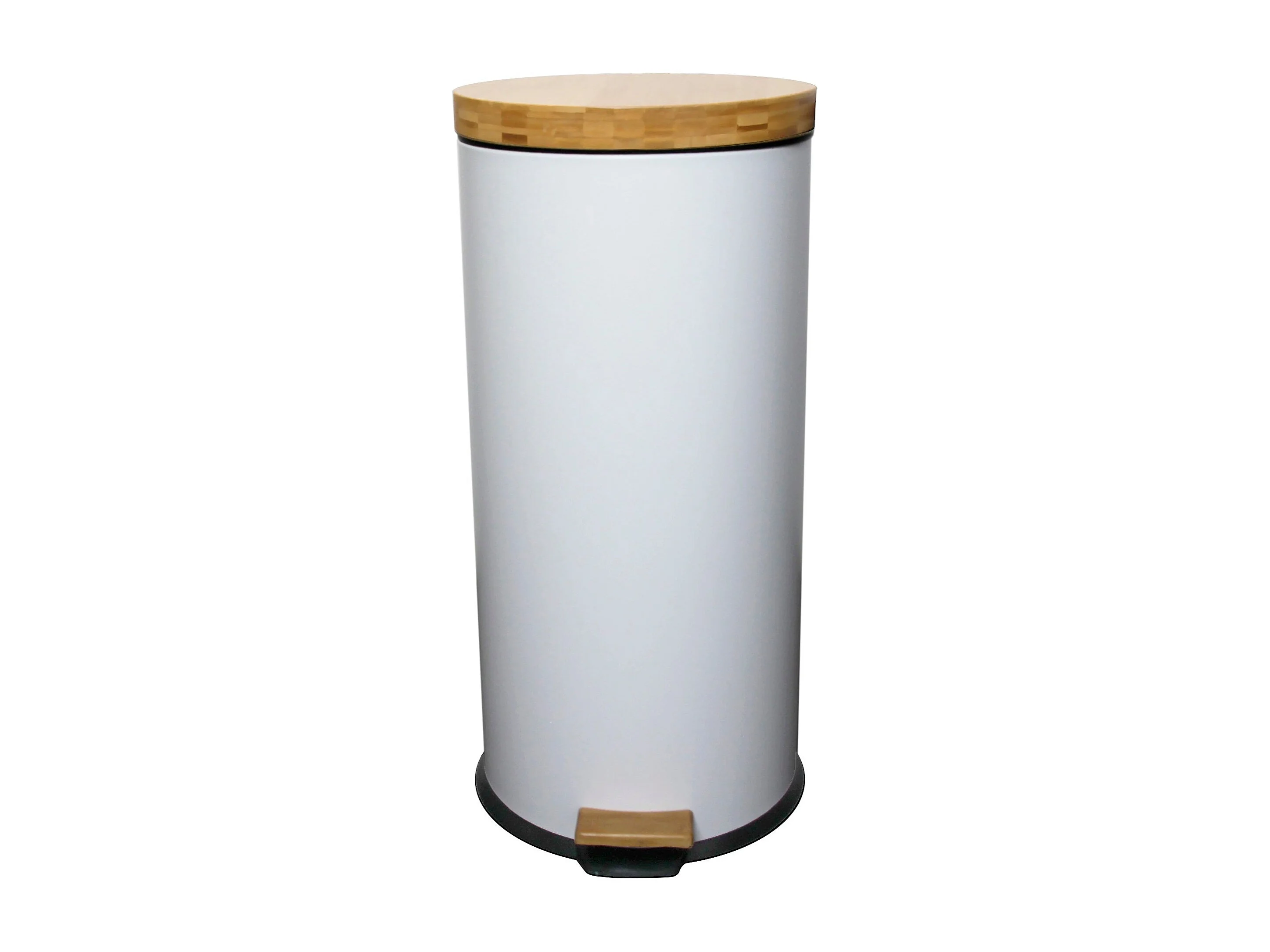 Poubelle 30 Litres en Métal Blanc et Couvercle en Bambou