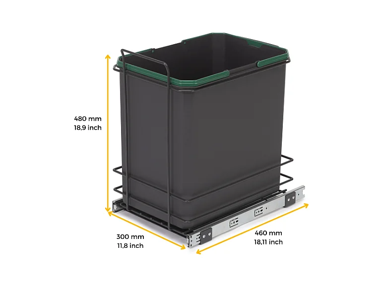 Poubelle de recyclage fixation inférieure et extraction manuelle 16 litres
