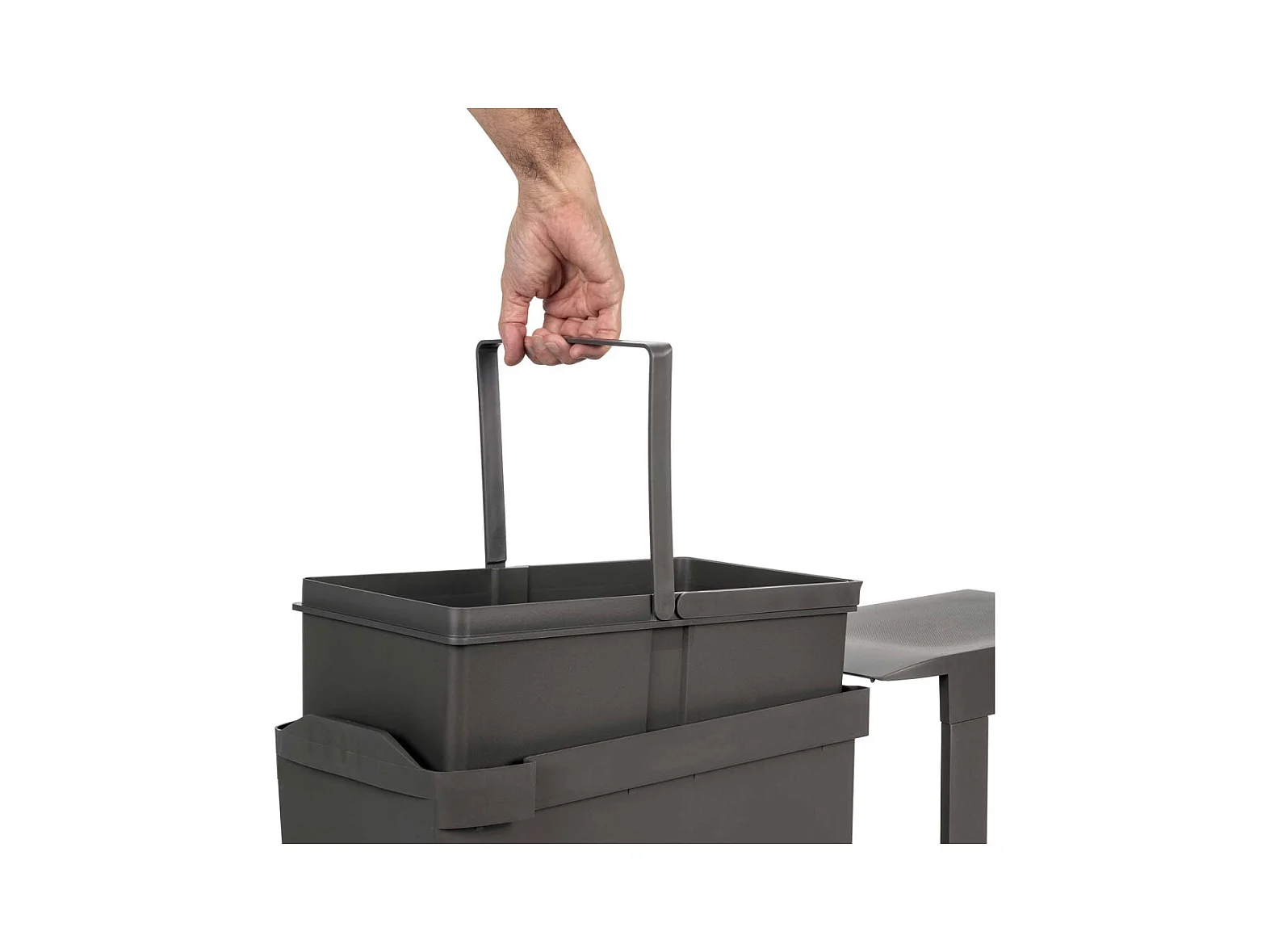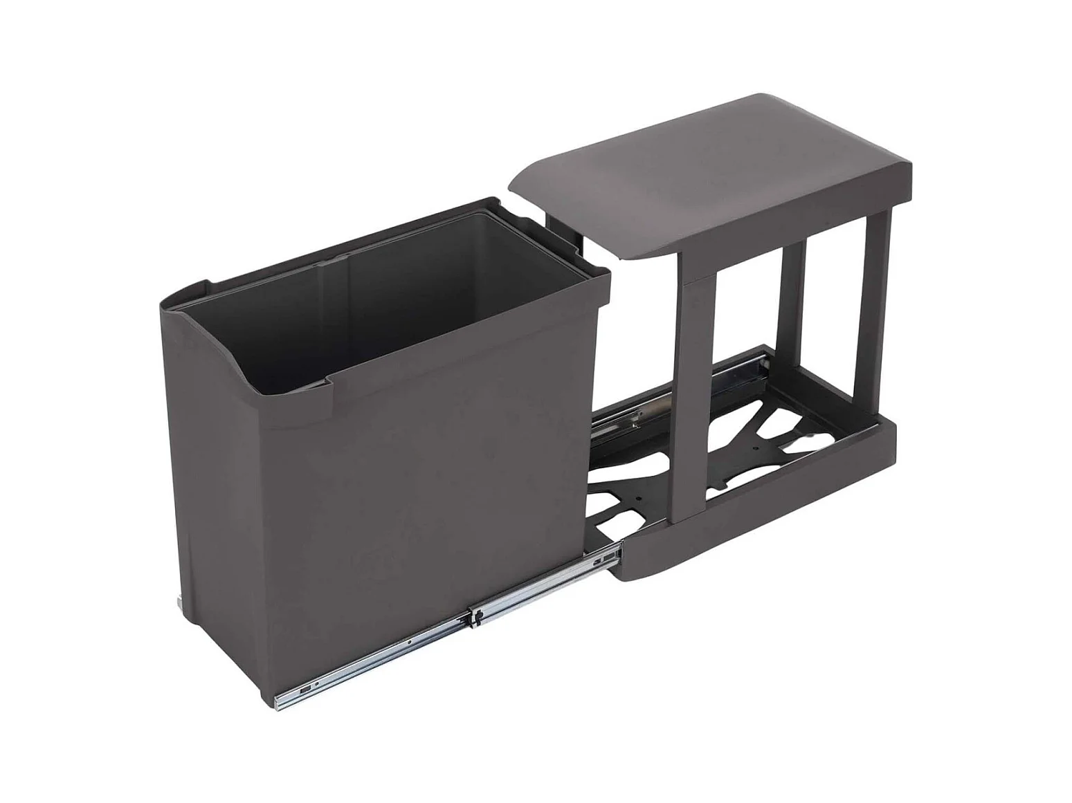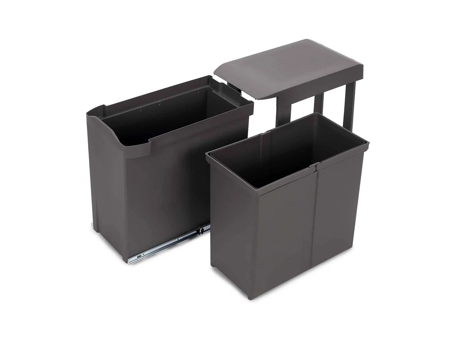 Poubelle de tri coulissante - 3 bacs amovibles avec poignée - 2 x 10L et 1 x 20L - métal PP gris