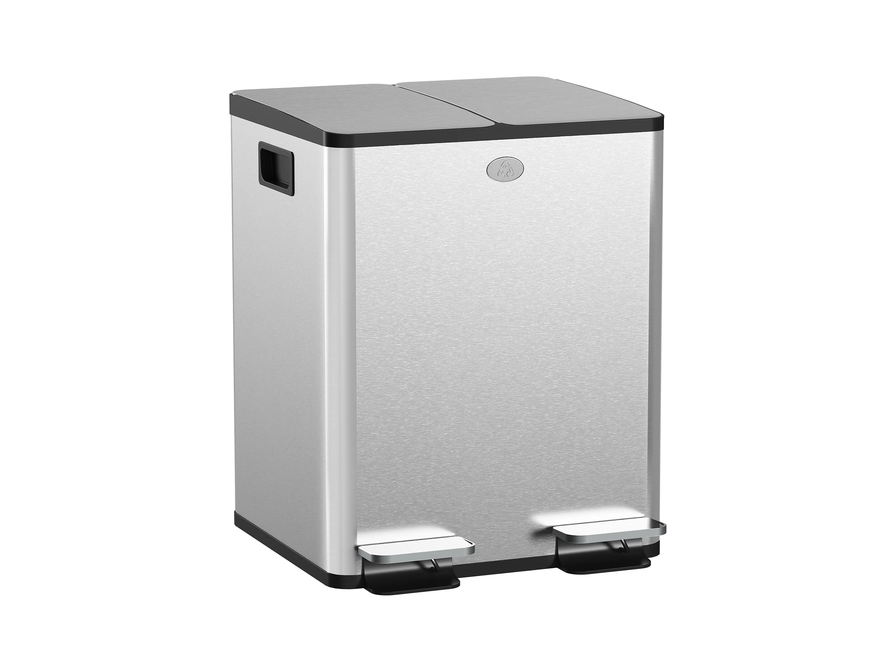 Poubelle manuelle tri selectif 2 bacs capacité totale 20L acier inox. brossé