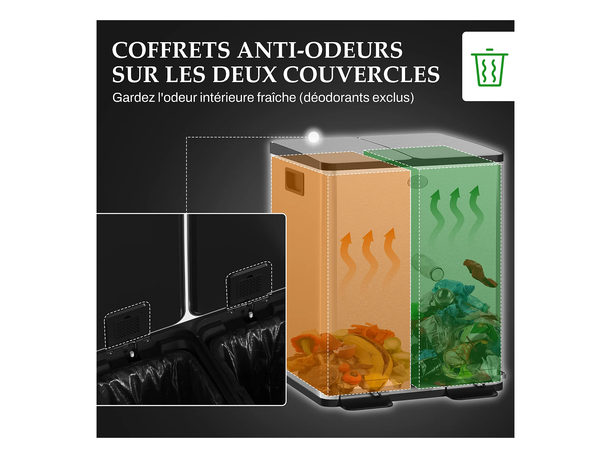 Poubelle automatique détecteur de mouvement poubelle tri selectif 2 bacs capacité totale 30L acier inox. brossé