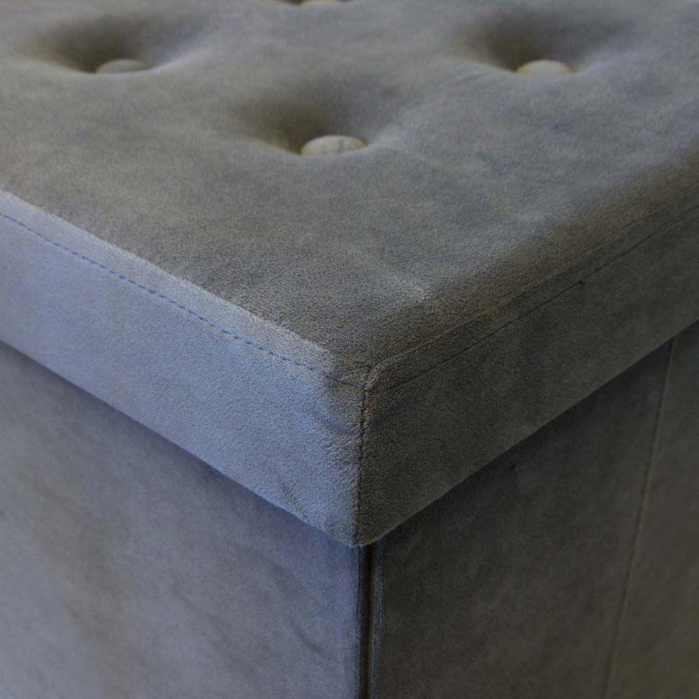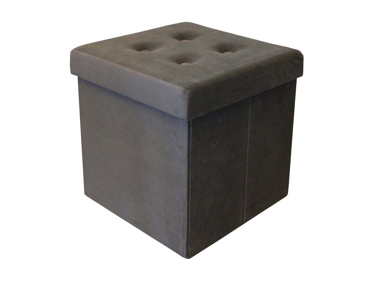 Pouf coffre carré en velours synthétique capitonné Gris anthracite