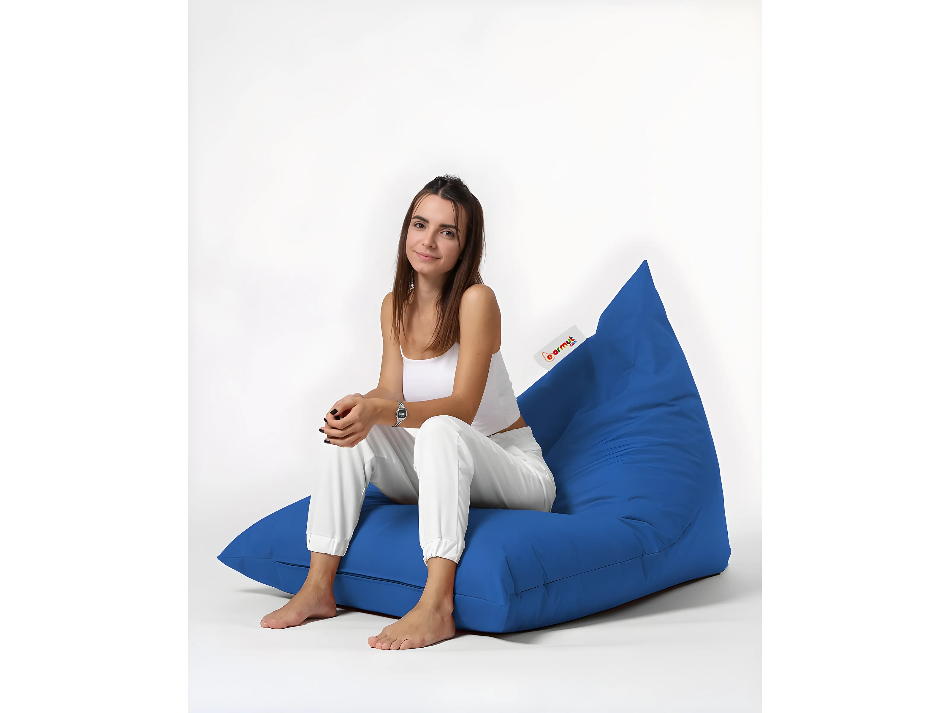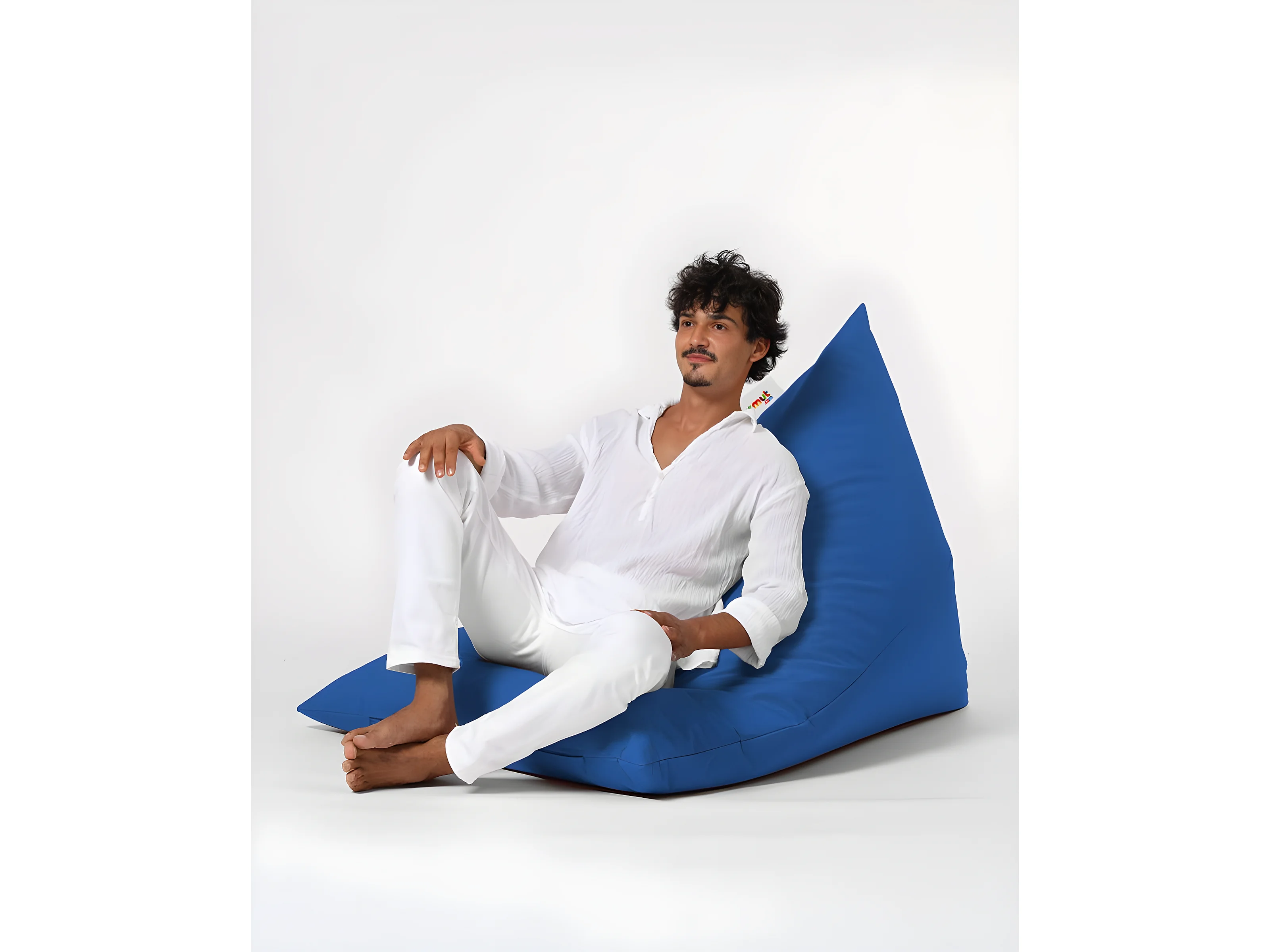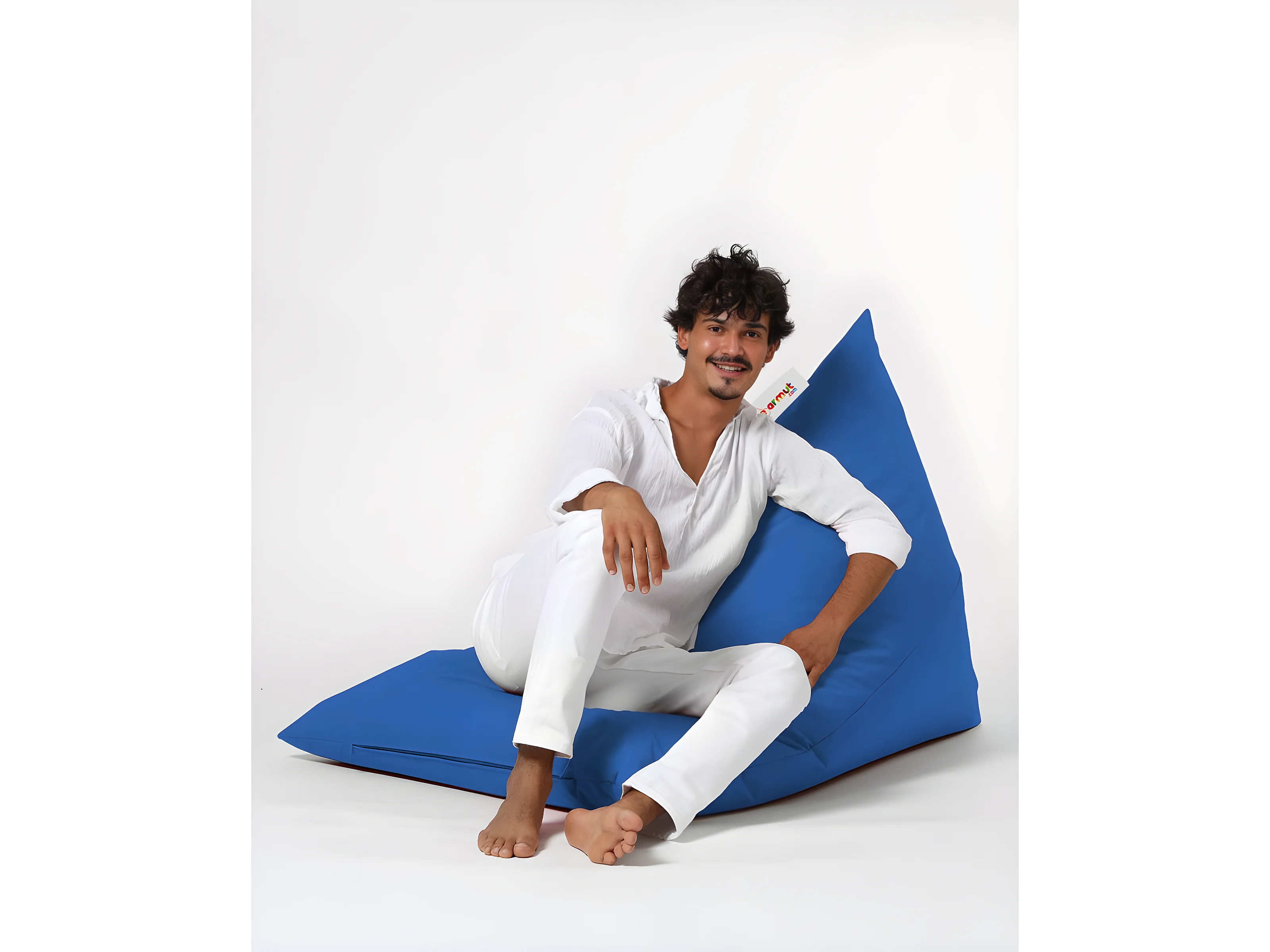 Pouf / coussin de sol triangle Gilka 90x145cm Tissu Bleu