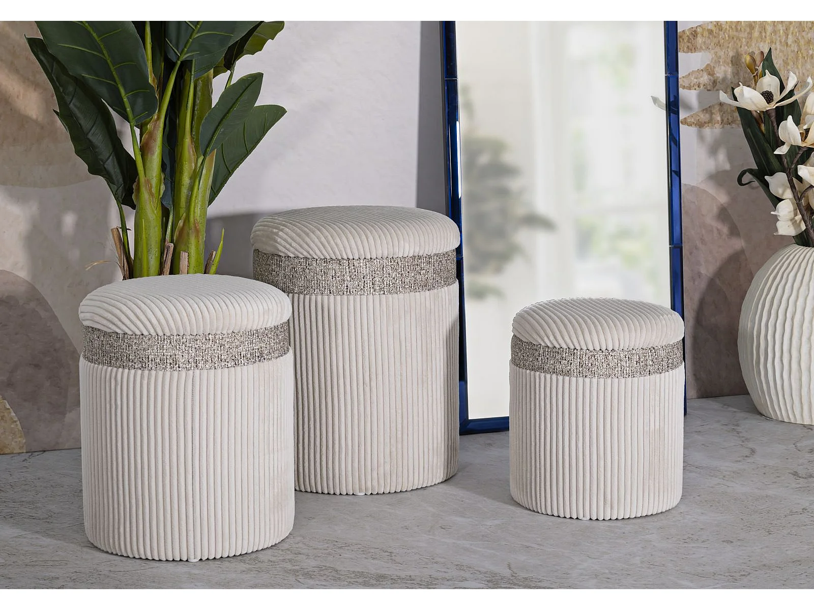 Lot de 3 Poufs Coffres "Curtain" 49cm Crème