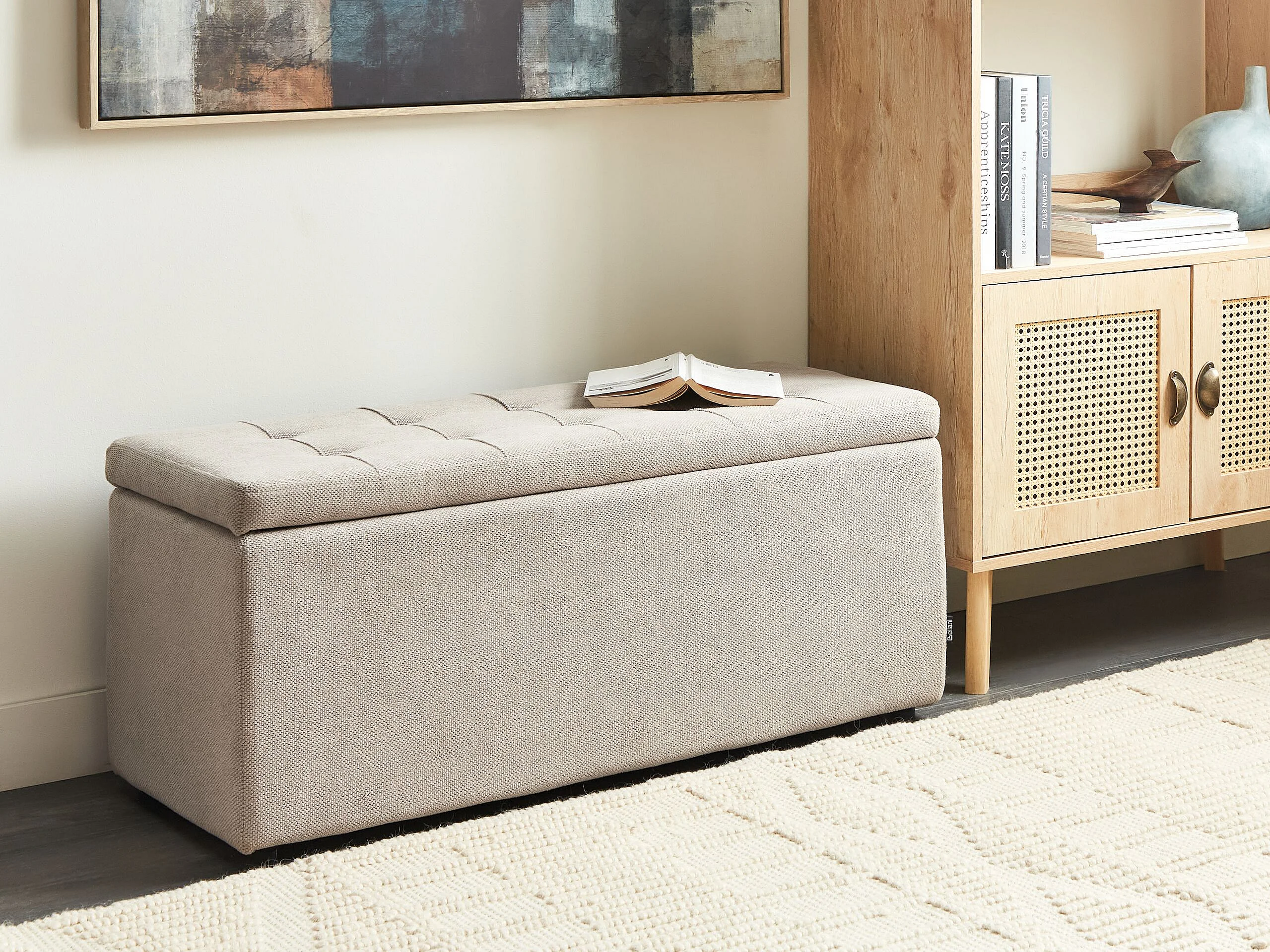 Pouf de rangement OREM Tissu Beige