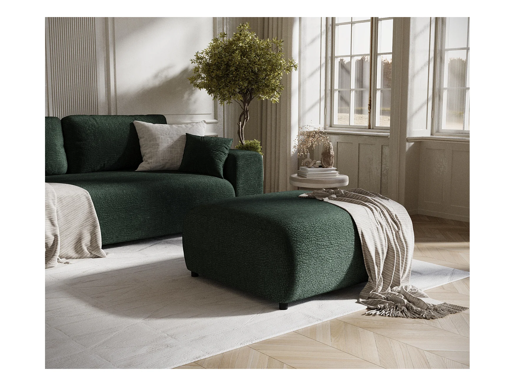 Pouf en tissu chenille Zanzibar - 88x88 cm - vert foncé