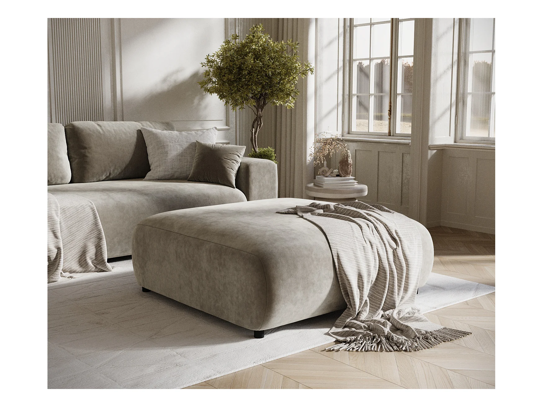 Pouf en tissu velours Zanzibar - 110x110 cm - taupe