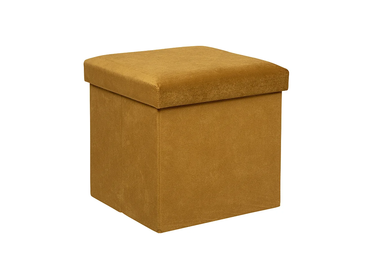 Pouf pliant et Coffre de rangement en tissu Jaune Moutarde 38 x 38 cm
