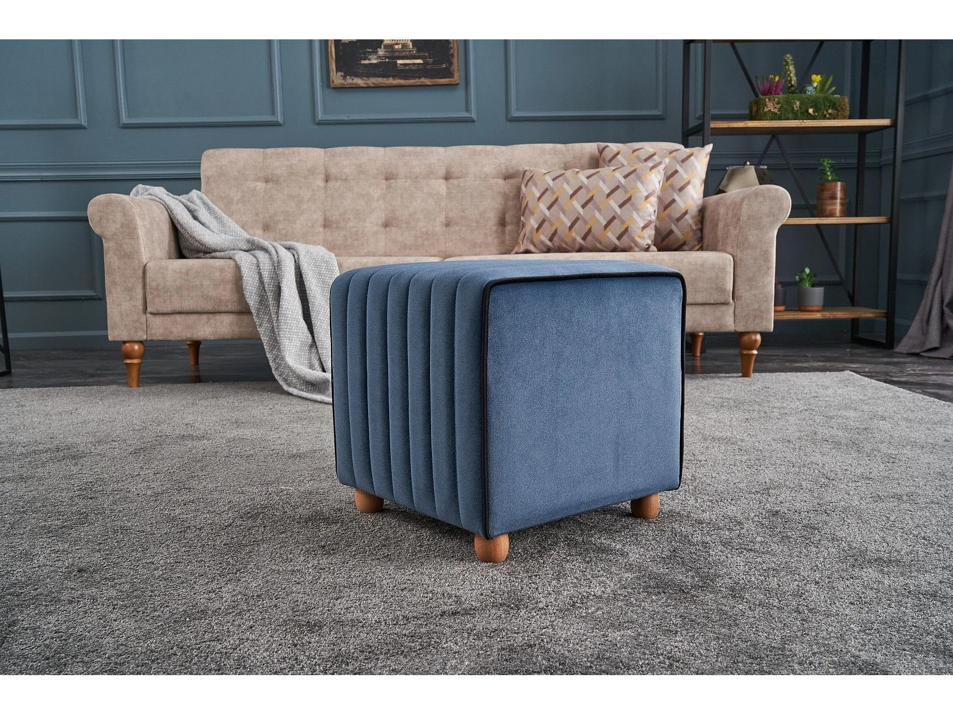 Pouf carré Nourhane Velours Bleu foncé