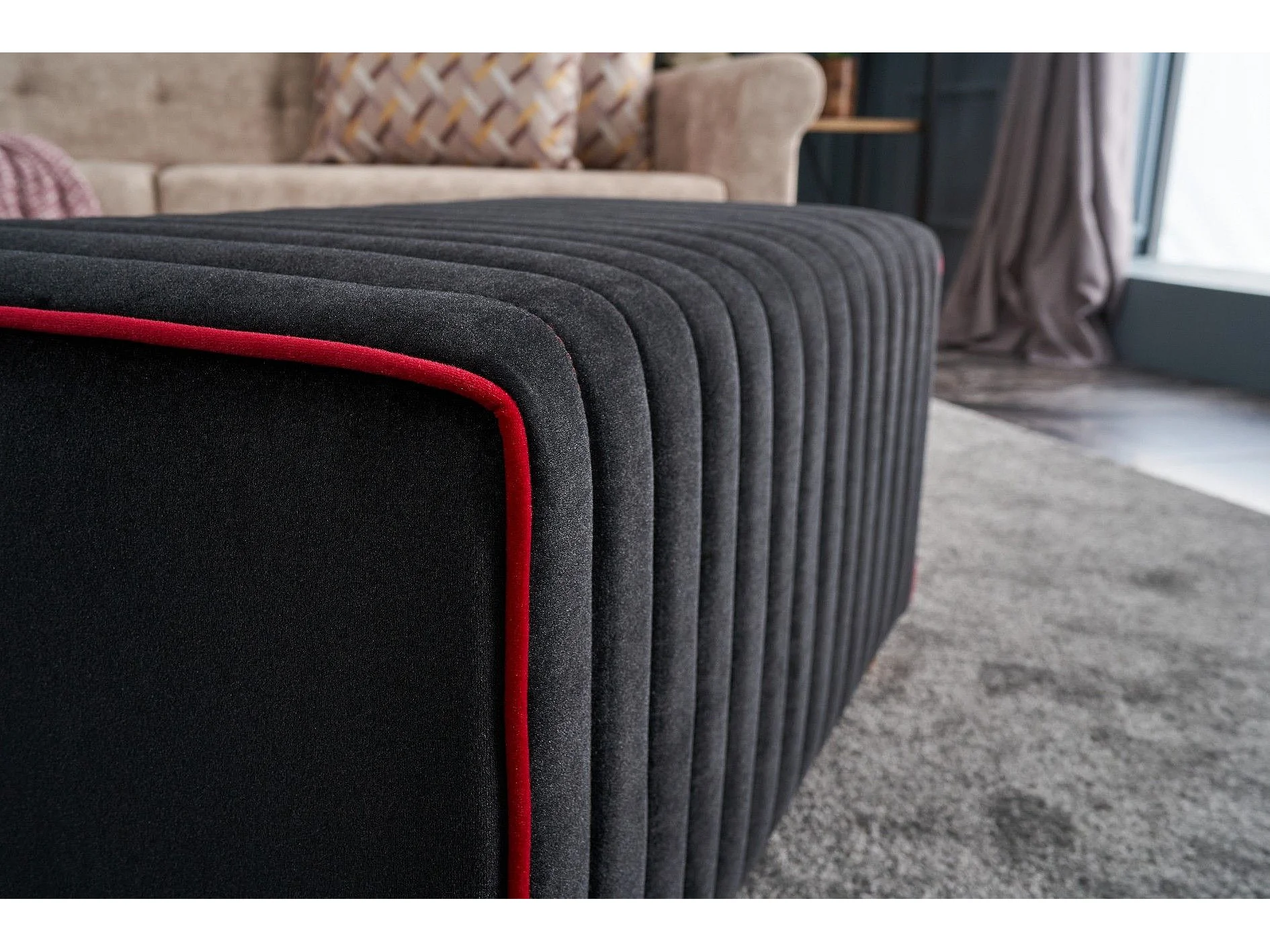 Pouf Sammy 80x40cm Velours Noir bordure Rouge