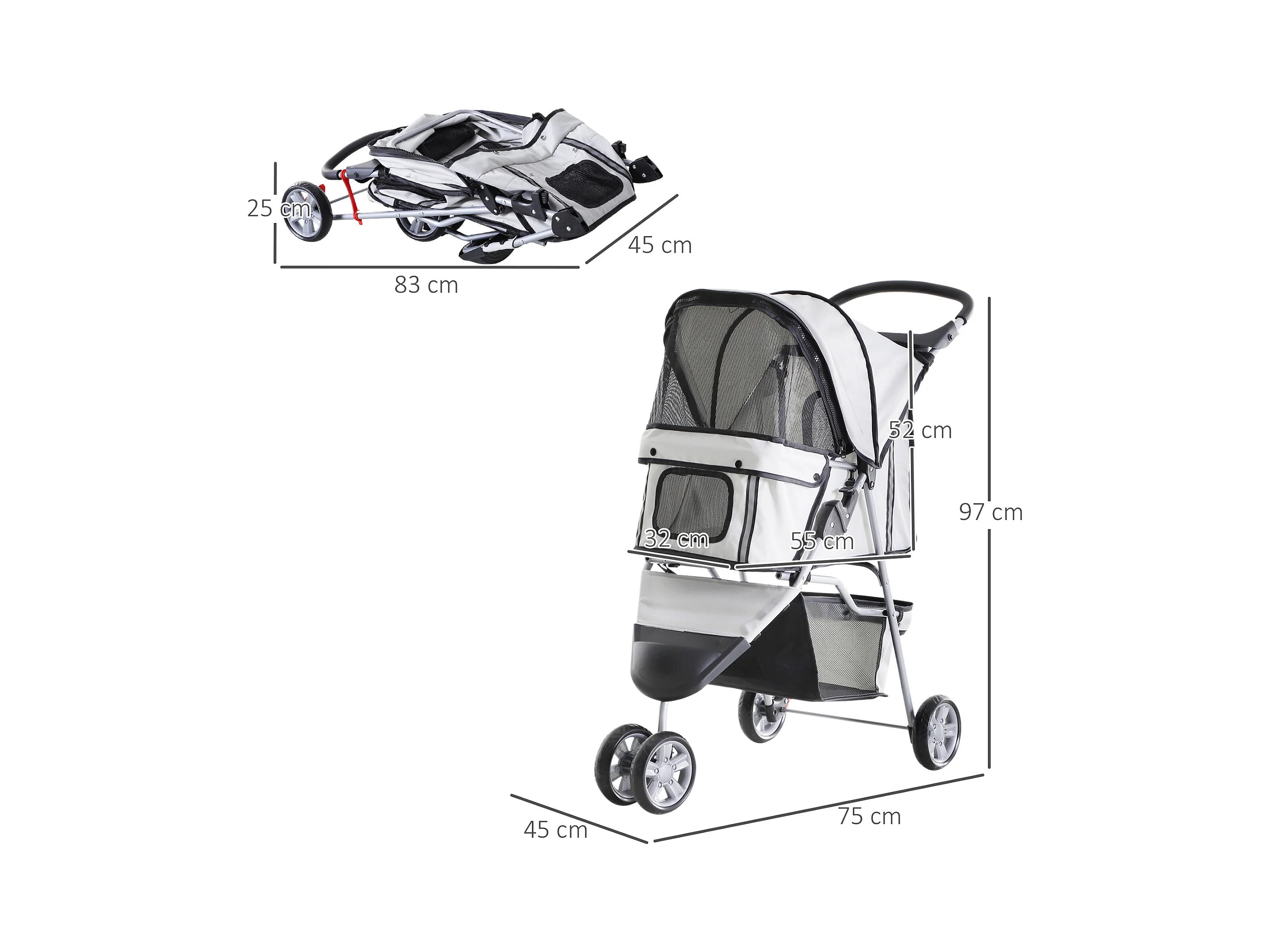 Poussette pliable animaux chien chat nacelle amovible 4 roues gris