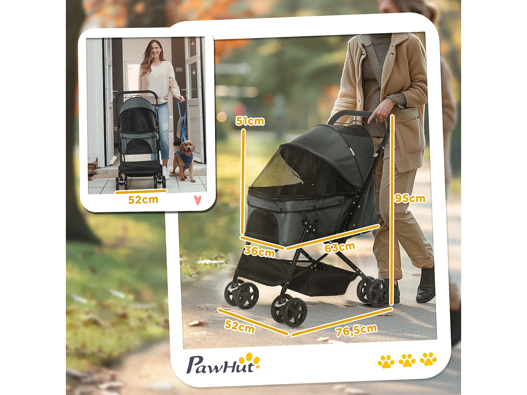 Poussette buggy pliable chien chat panier et sac de rangement attaches sécurité housse réglable poignée réglable acier Oxford gris