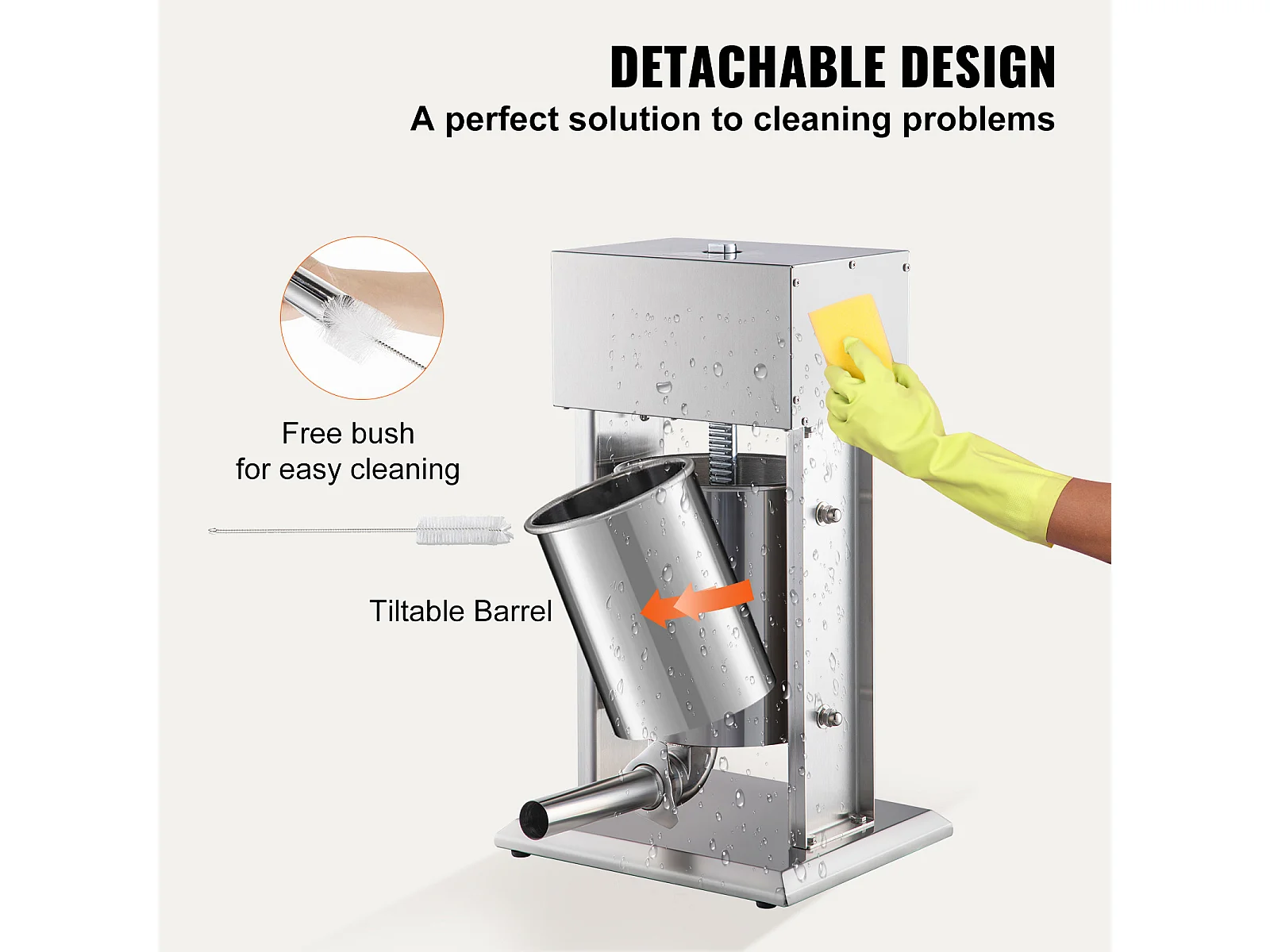 Poussoir à Saucisses SucceBuy Manuel Capacité 5 L, Machine à Saucisses Verticale en Acier Inoxydable, Ensacheuse à Double Vitesse, avec 5 Tubes de Remplissage
