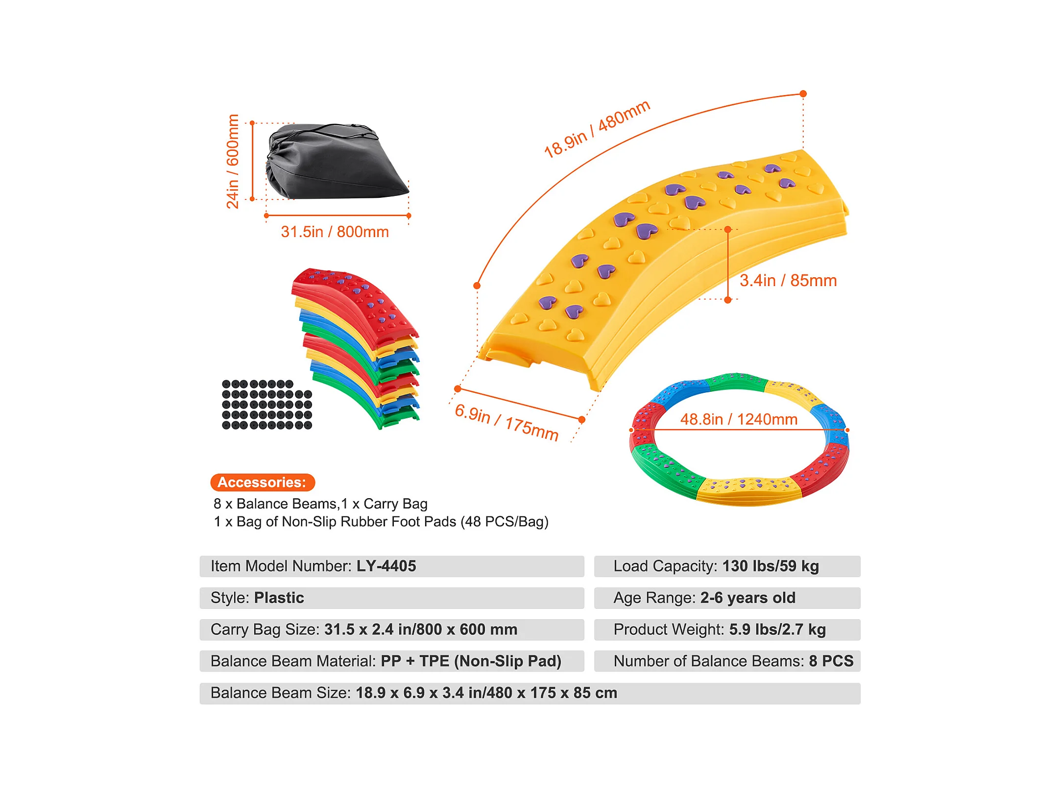 Poutre d'équilibre pour enfants total 8 pcs - parcours de motricité - usage intérieur extérieur - multicolore