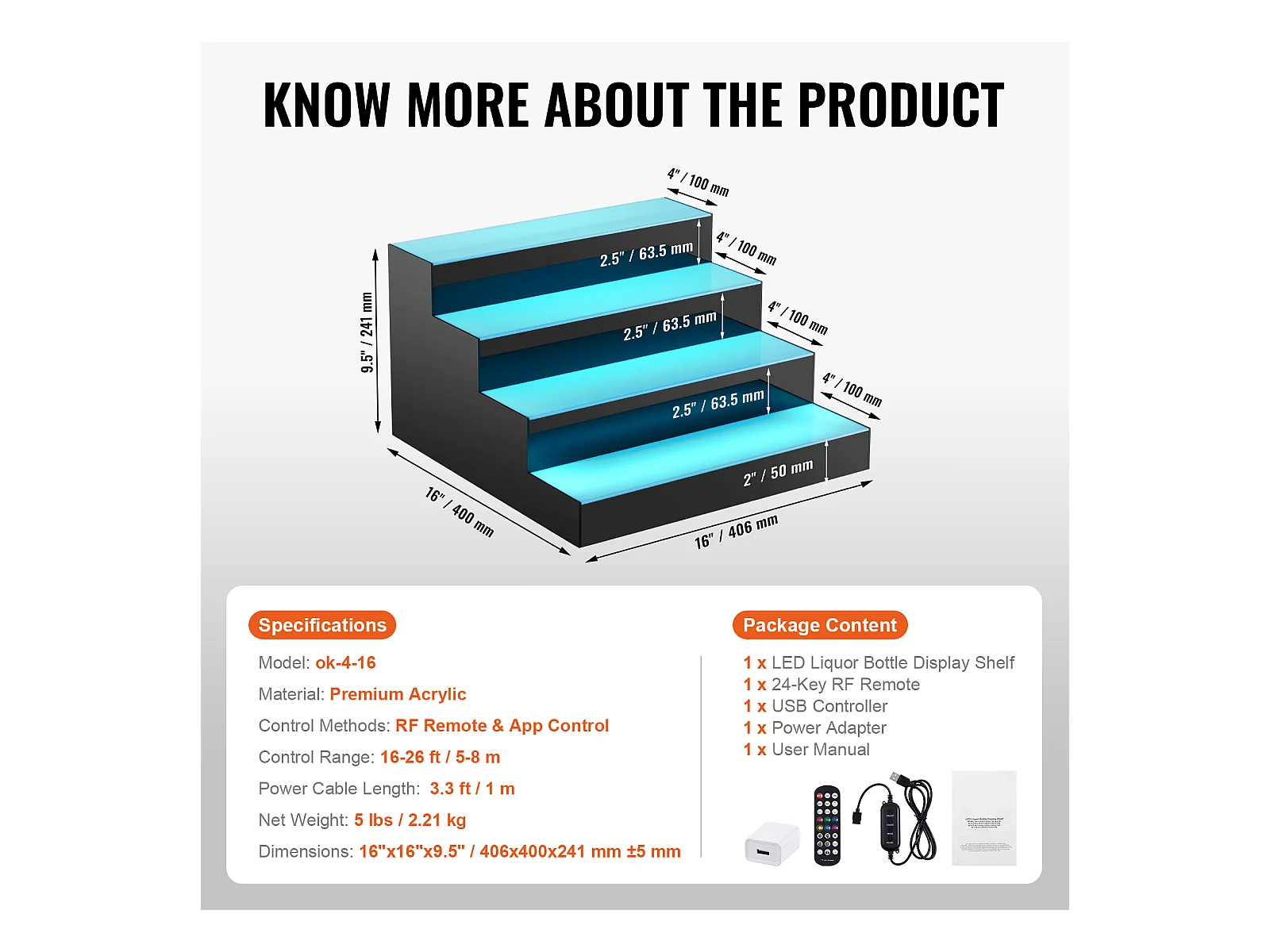 Présentoir à Bouteilles d'Alcool Éclairé à LED SucceBuy, Étagère de Bar, 40,6 cm, 4 Étapes