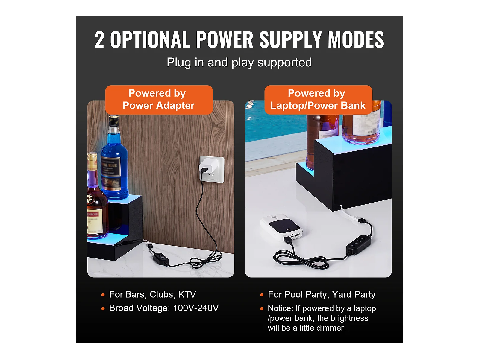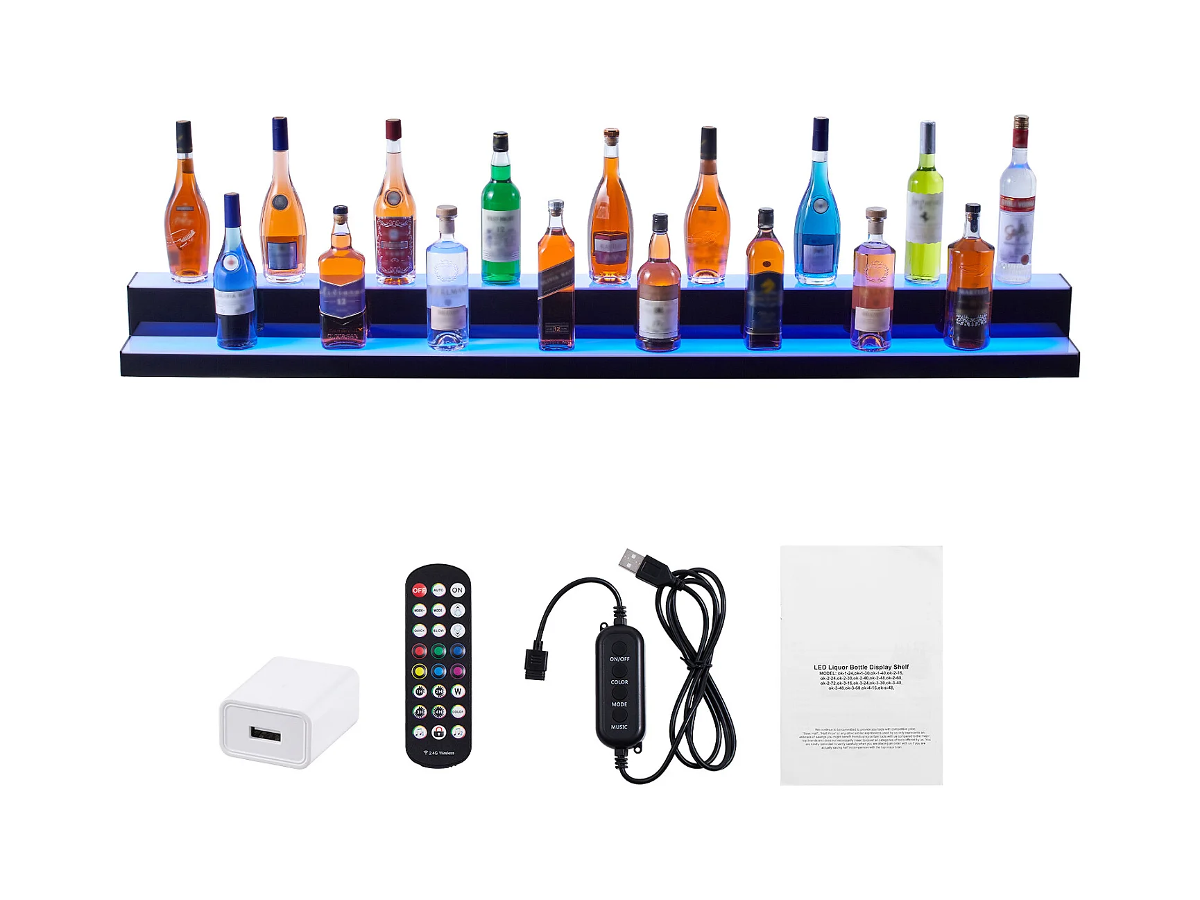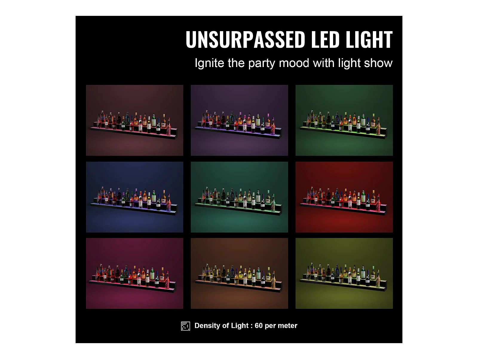 Présentoir de Bouteilles d'Alcool SucceBuy, Éclairé par LED en 2 Étapes, Étagère de Bar 182,8 cm, Contrôle RF et Application