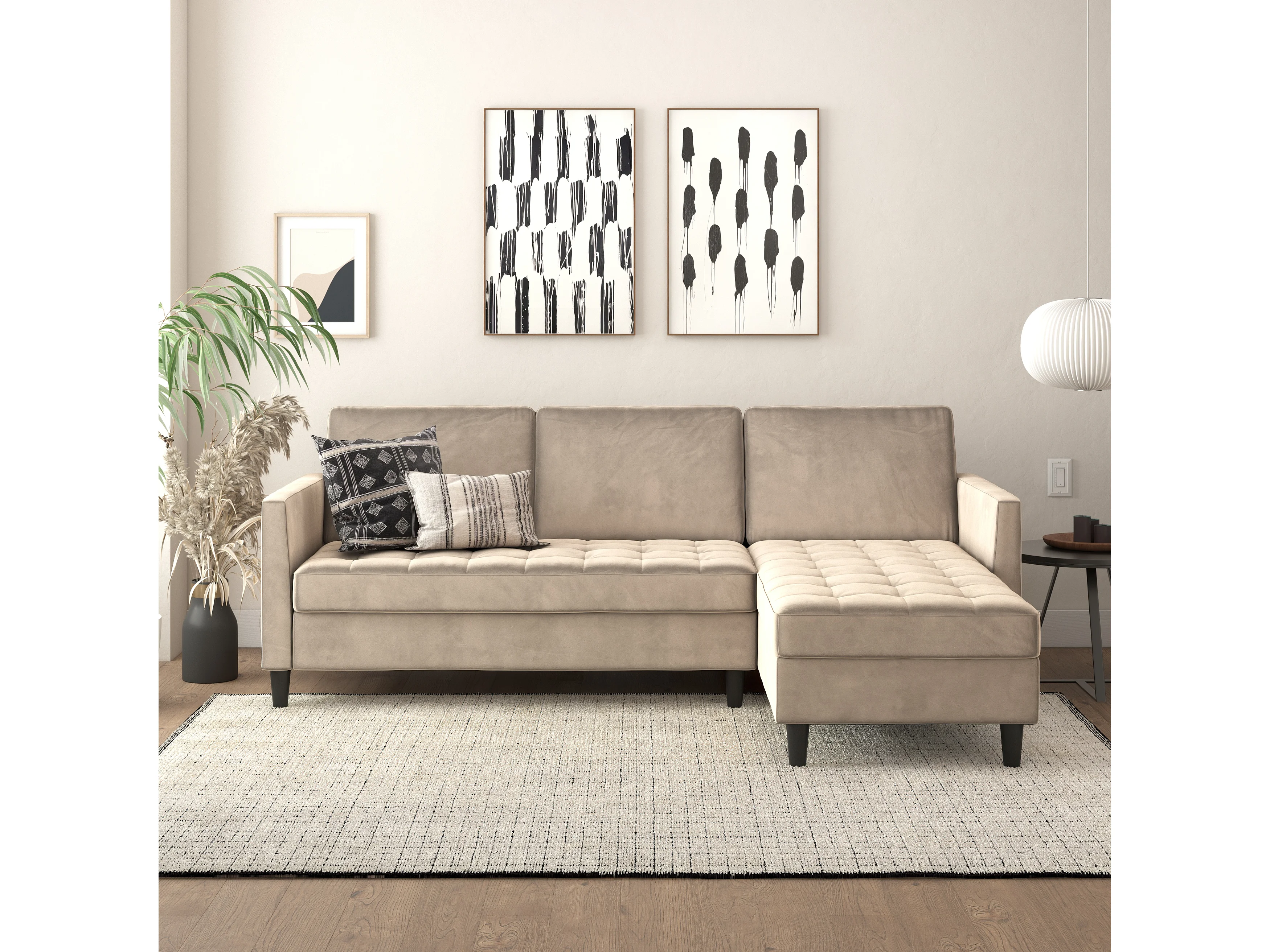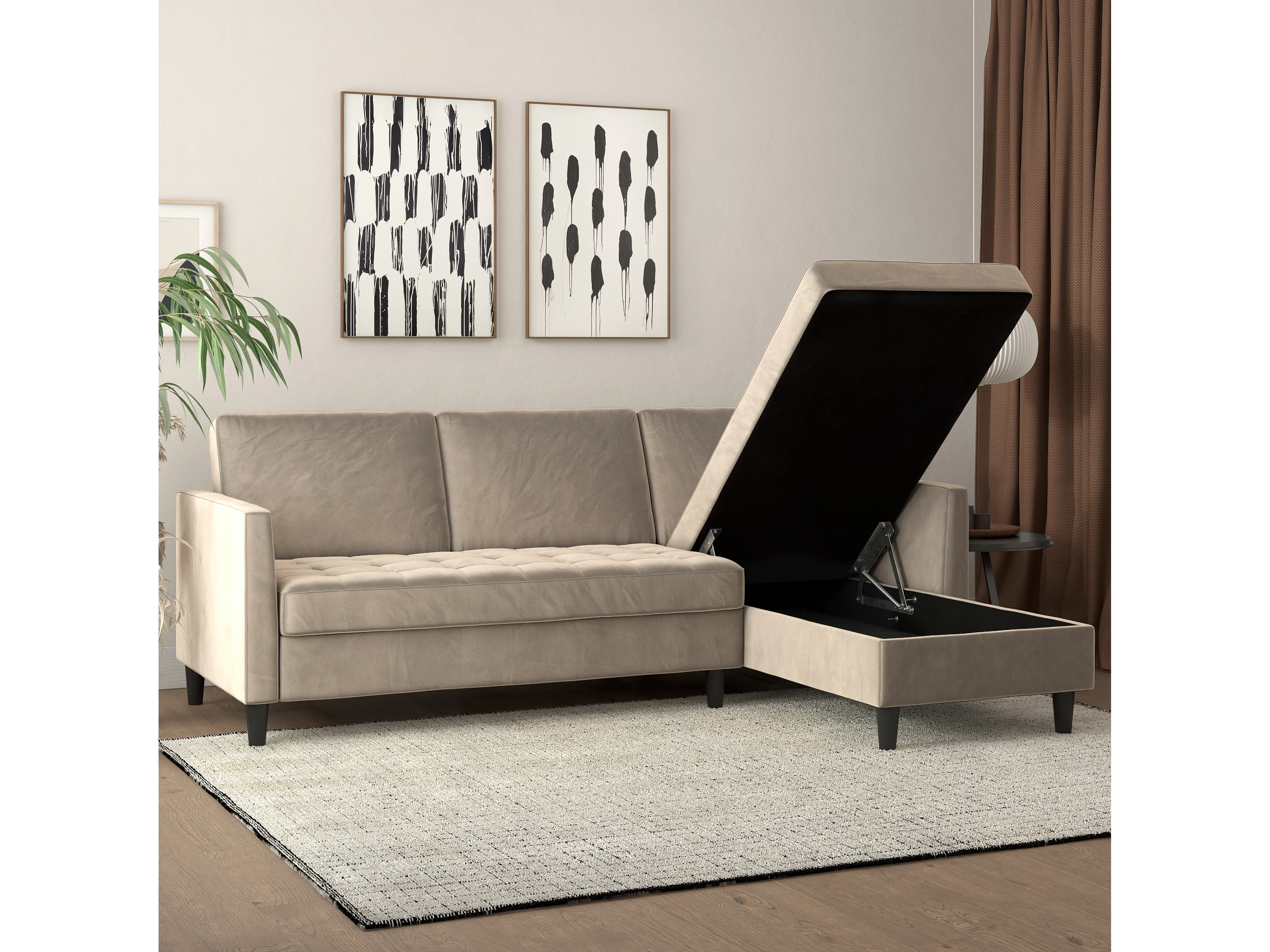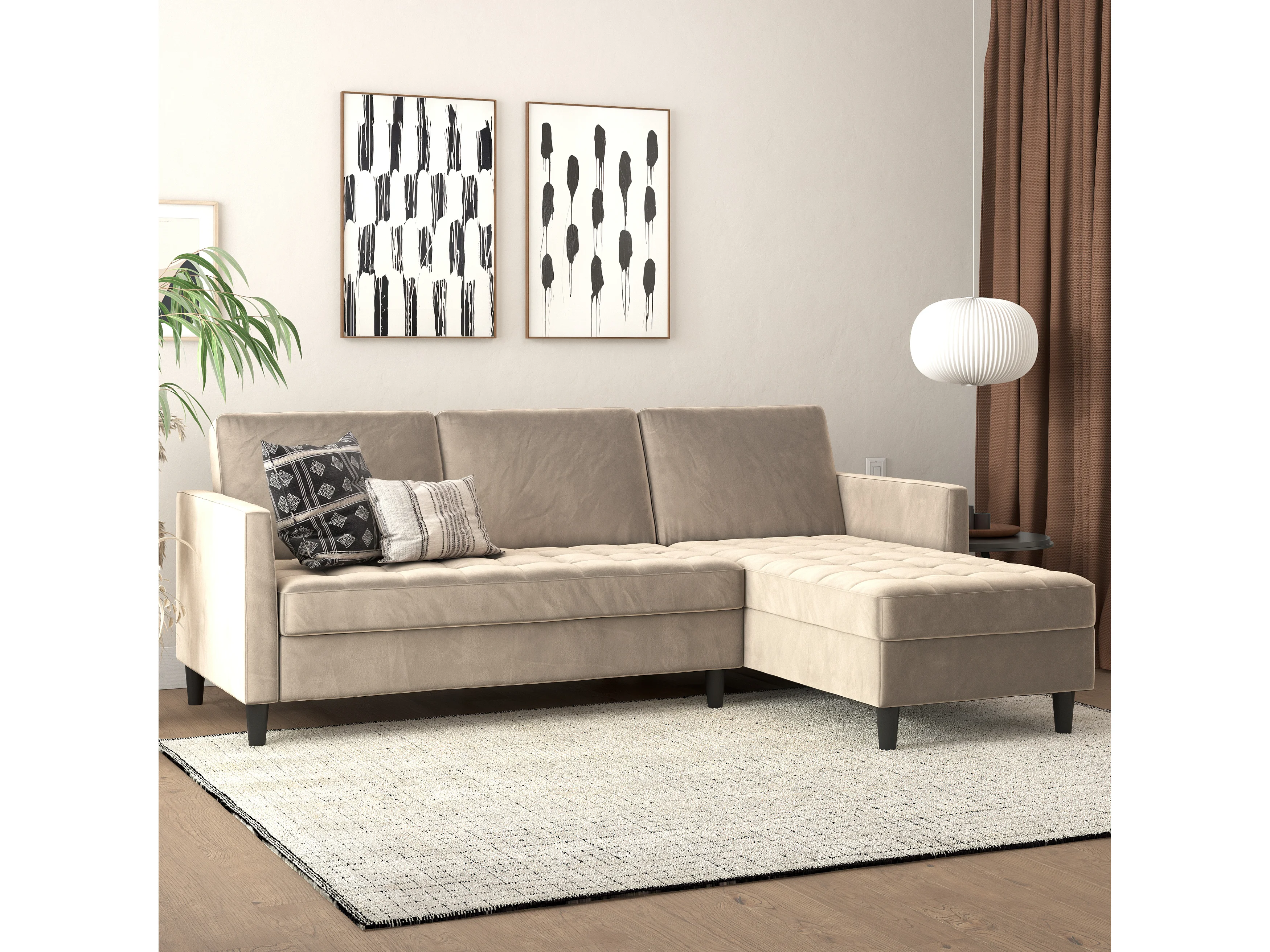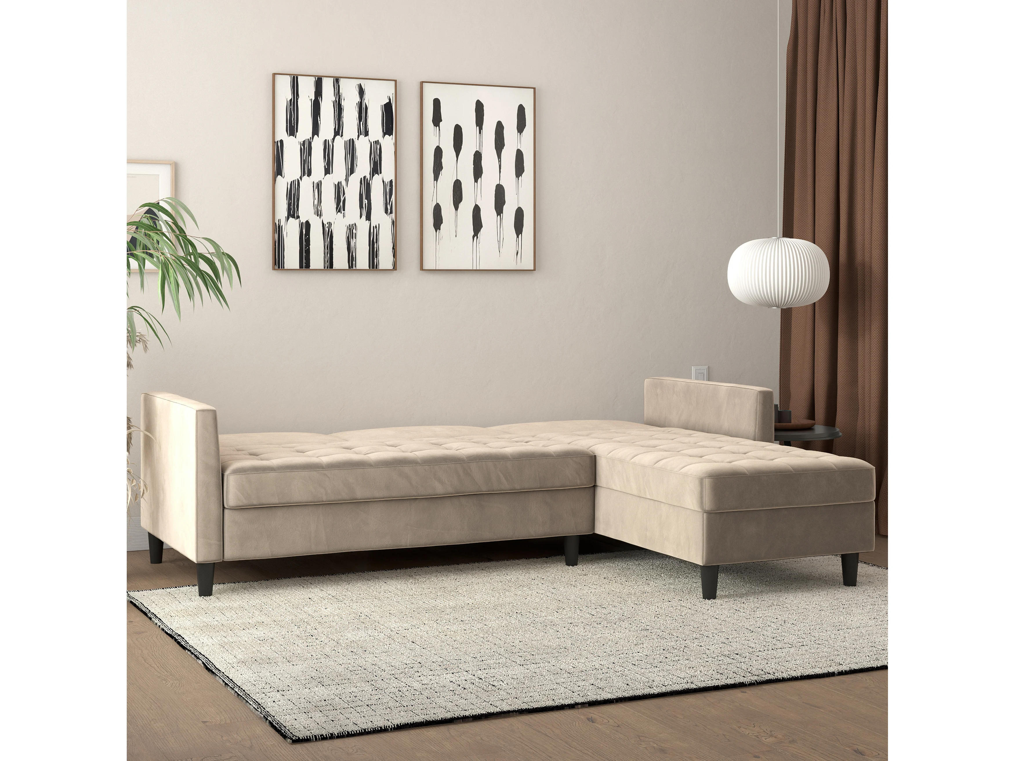 Presley | Canapé convertible 3 places avec méridienne en velours taupe