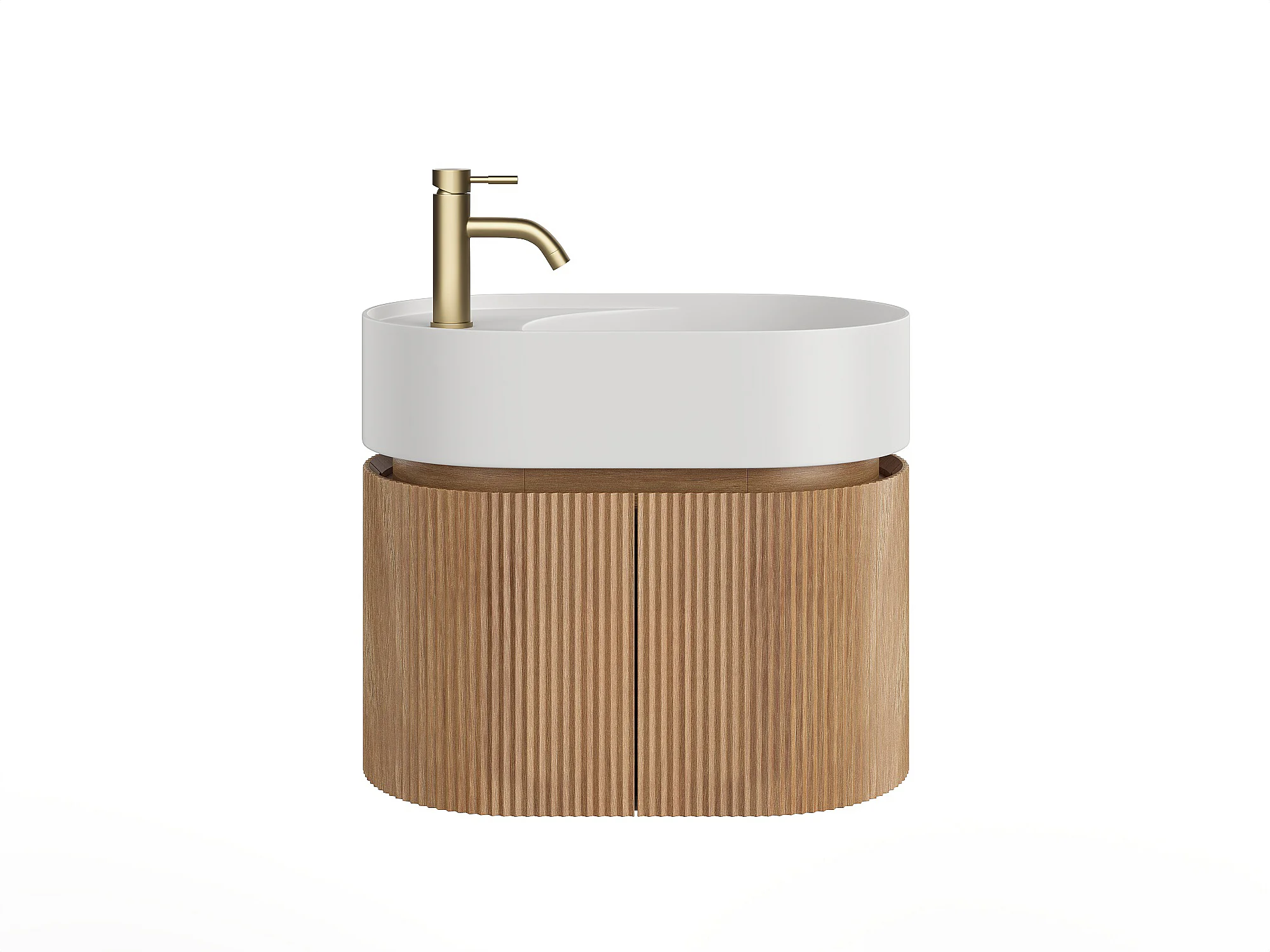 Meuble de salle de bain strié suspendu en bois de frêne avec vasque en résine blanc mat et robinet - Naturel clair - 60 x 51 x 37 cm - PROTEA